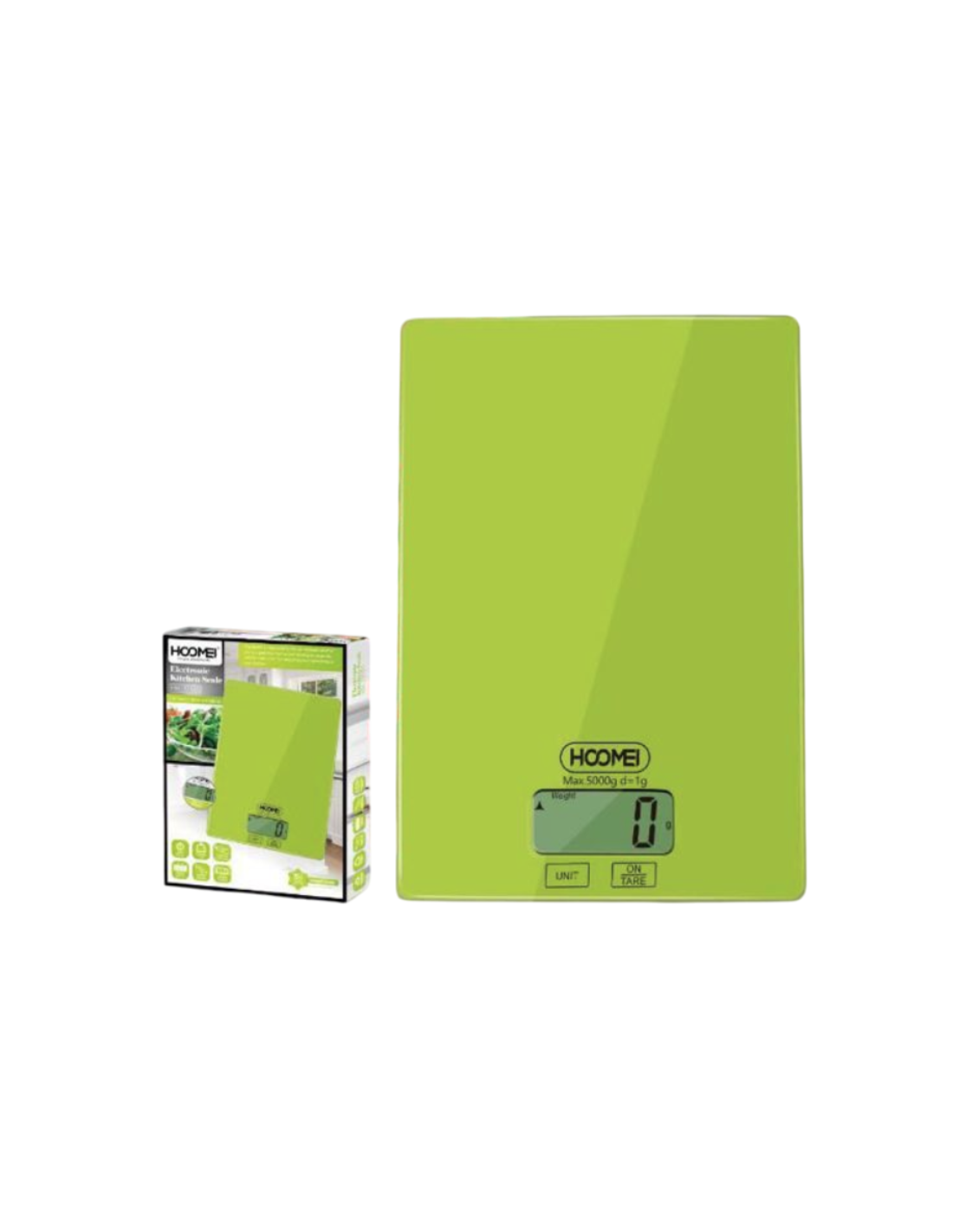 La Hoomei HM-1210 è una bilancia elettronica da cucina progettata per offrire misurazioni precise e affidabili in un formato compatto e portatile. Con una capacità massima di 5 kg e una precisione di 1 g, è ideale per pesare ingredienti come farina, zucchero, frutta, verdura o altri alimenti.