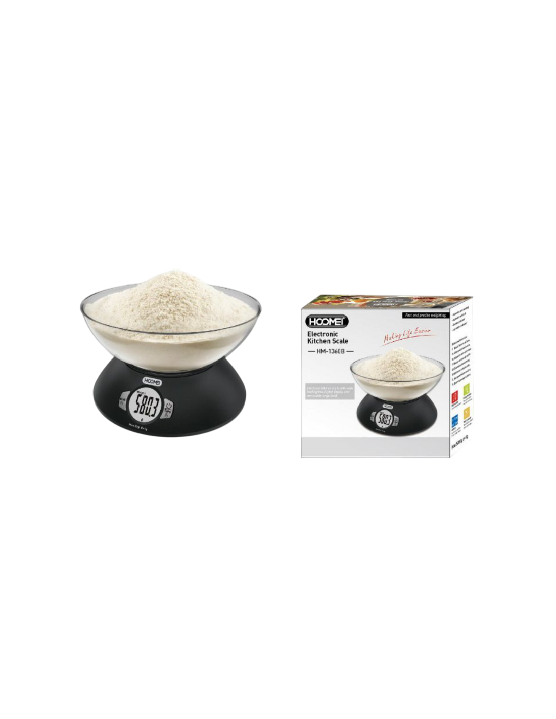 Perfetta per ogni cucina moderna, la bilancia elettronica HM-1360B unisce design compatto, alta precisione e funzionalità avanzate per facilitare ogni tua preparazione culinaria.