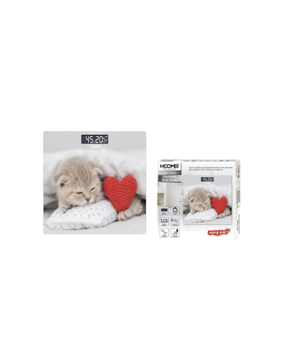 La Hoomei HM-1528A è la bilancia perfetta per chi cerca un dispositivo elegante, preciso e affidabile per il monitoraggio del peso. Il suo design in vetro temperato la rende un'aggiunta moderna ed elegante a qualsiasi bagno o area fitness.