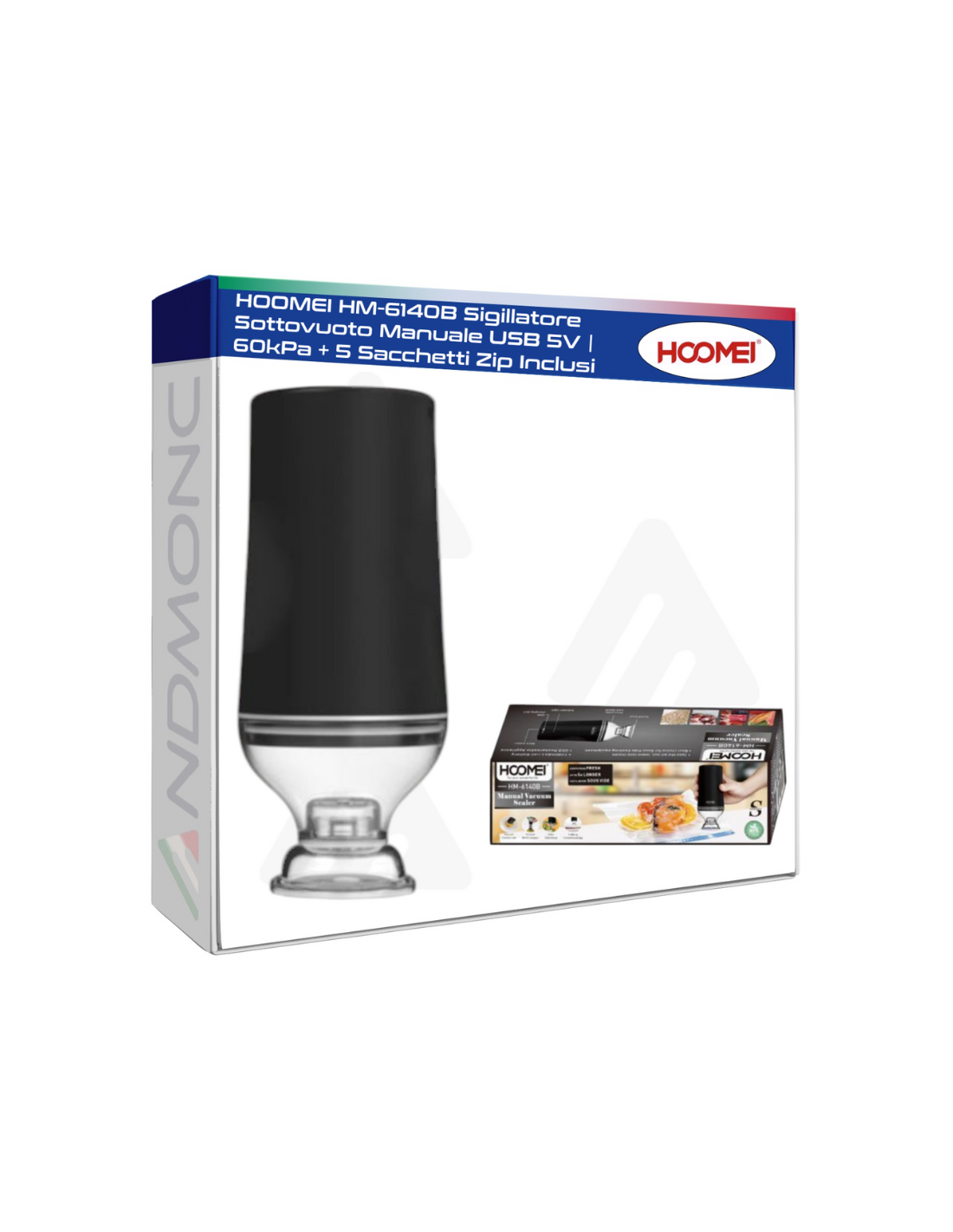 HOOMEI HM-6140B Sigillatore Sottovuoto Manuale USB 5V - 60kPa + 5 Sacchetti Zip Inclusi