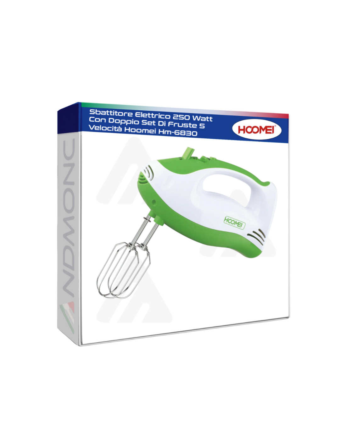 Sbattitore Elettrico 250 Watt Con Doppio Set Di Fruste 5 Velocità Hoomei Hm-6830 Verde
