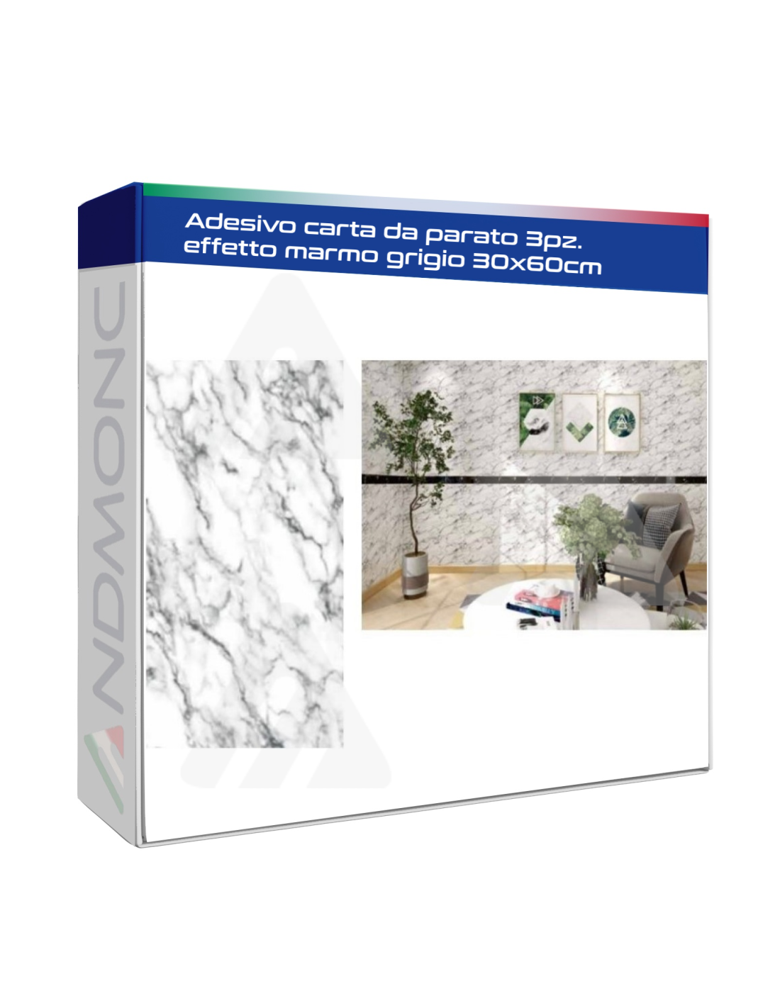 Adesivo carta da parato 3pz. effetto marmo grigio 30x60cm