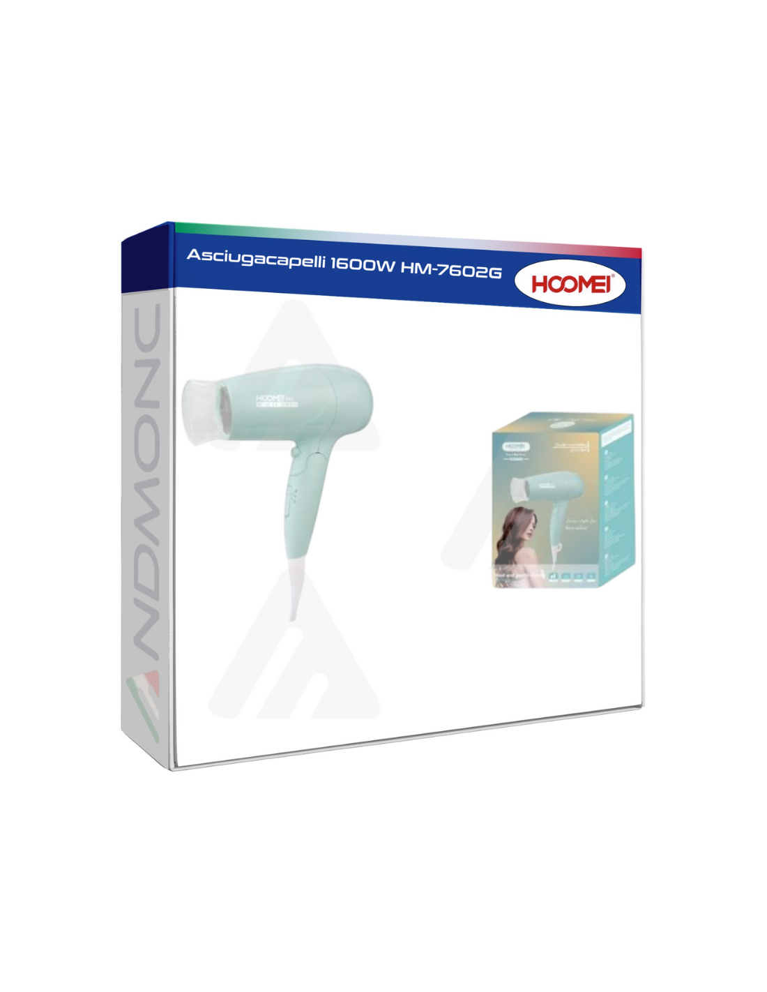 Asciugacapelli Hoomei HM-7602G – 1600W, Pieghevole e Compatto
