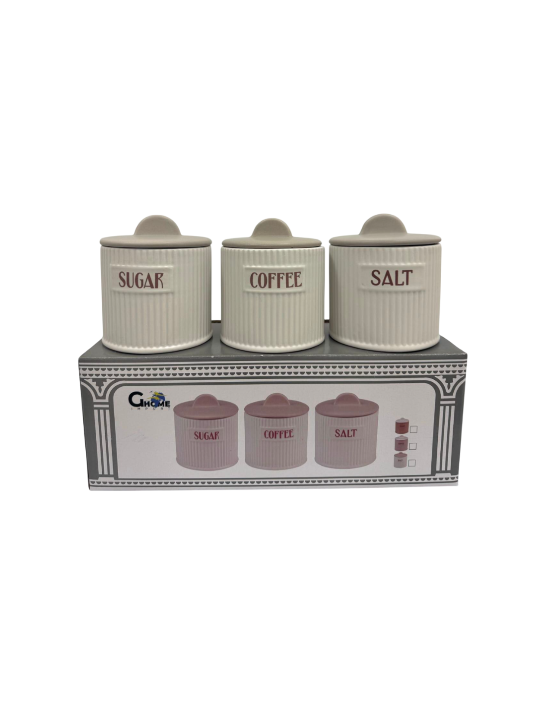 Set 3 Barattoli Caffè, Zucchero, Sale – Bianco