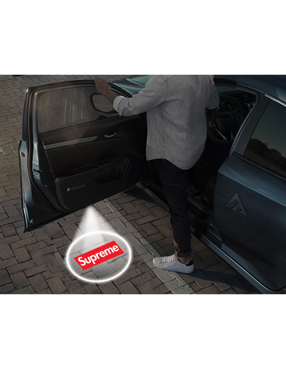 • Kit luci led sottoporta modello Carbonio, sensore automatico intelligente con Proiezione logo Supreme, kit da 2 o da 4 Porte