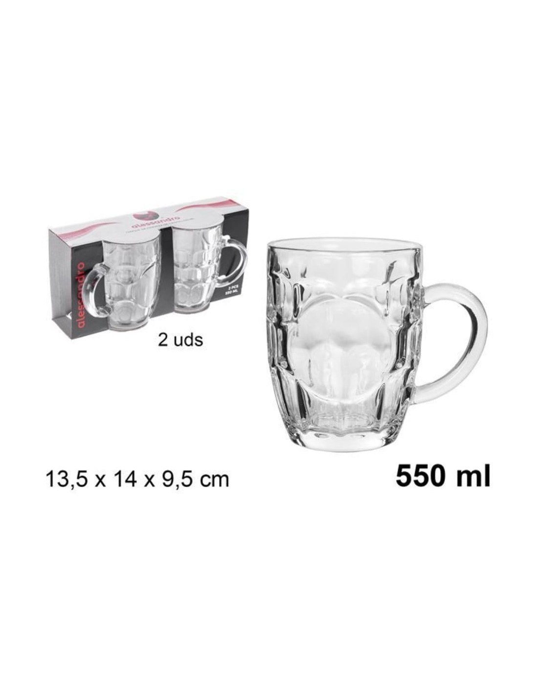 Scopri il Set 2pz bicchieri birra in vetro: l'essenza della perfetta degustazione a casa tua! Con una capienza generosa di 550ML e dimensioni ideali di 13,5x14x9,5cm, questi bicchieri trasformano ogni sorso in un'esperienza da pub autentico.