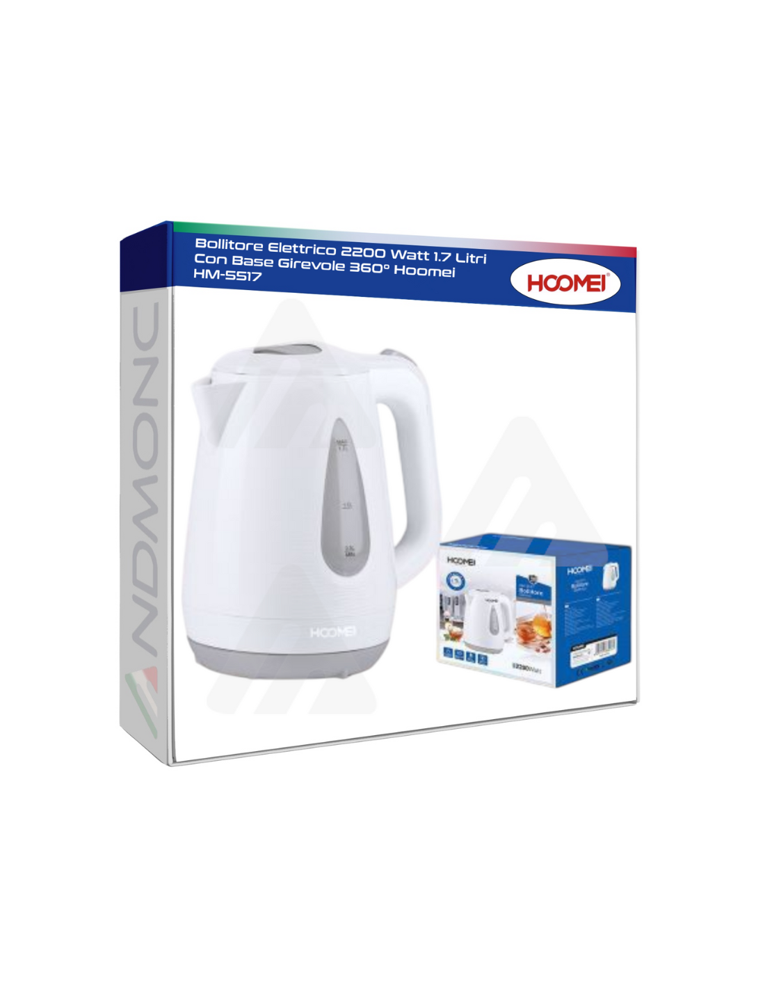 Bollitore Elettrico 2200 Watt 1.7 Litri Con Base Girevole 360° Hoomei HM-5517
