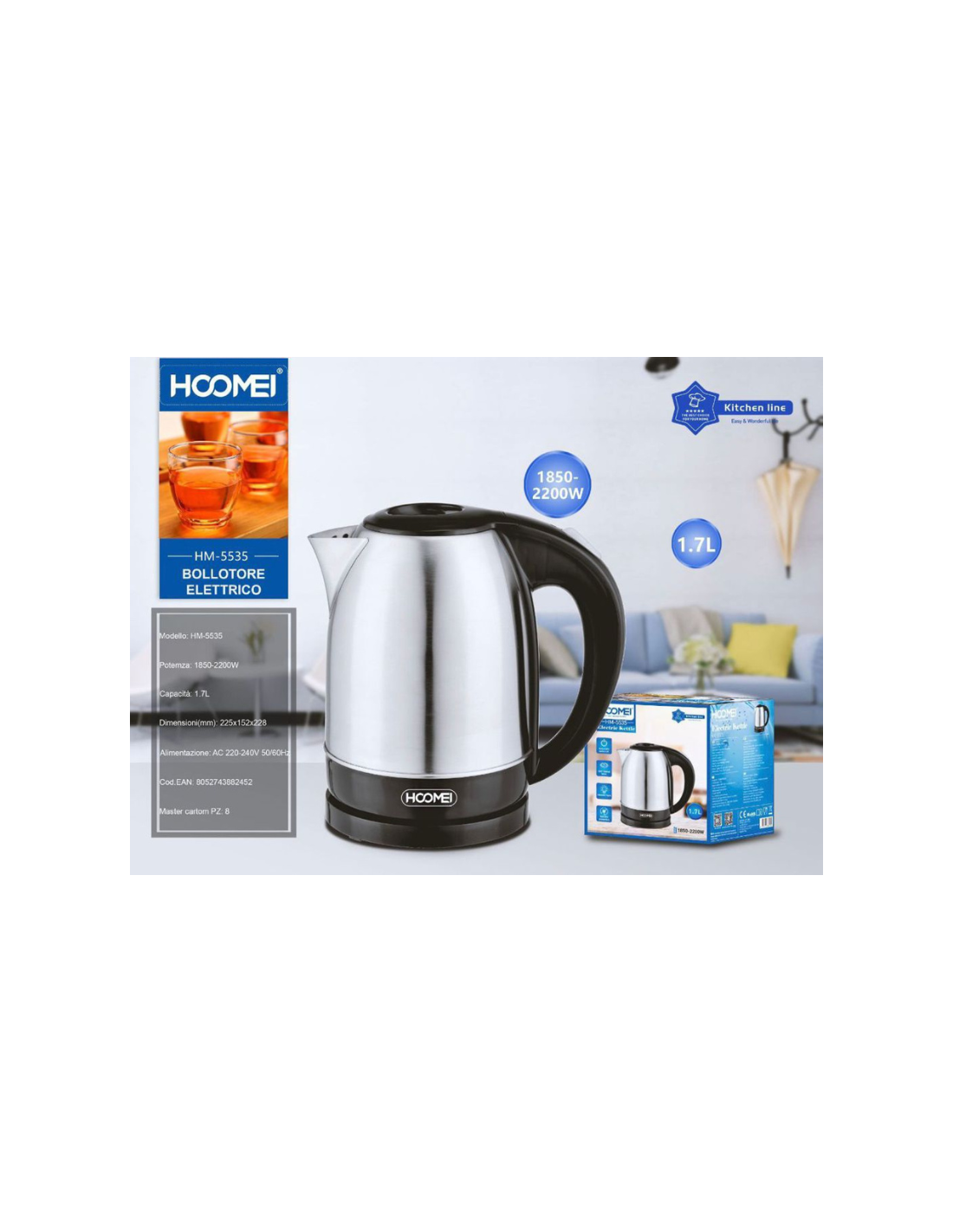 Bollitore Elettrico 2200 Watt 1.7 Litri Per Infusi Tisane Hoomei Hm-5535