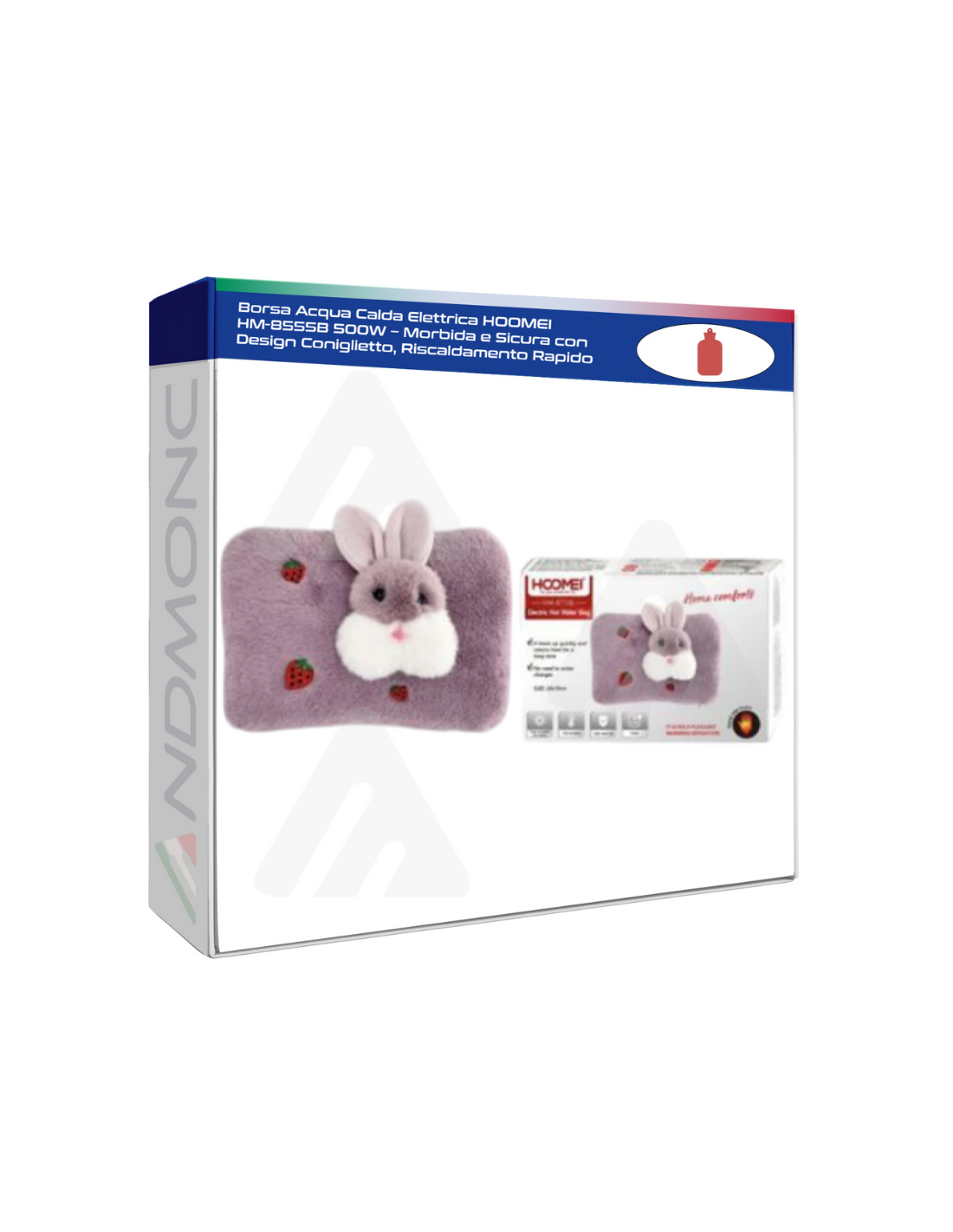 Borsa Acqua Calda Elettrica HOOMEI HM-8555B 500W – Morbida e Sicura con Design Coniglietto, Riscaldamento Rapido