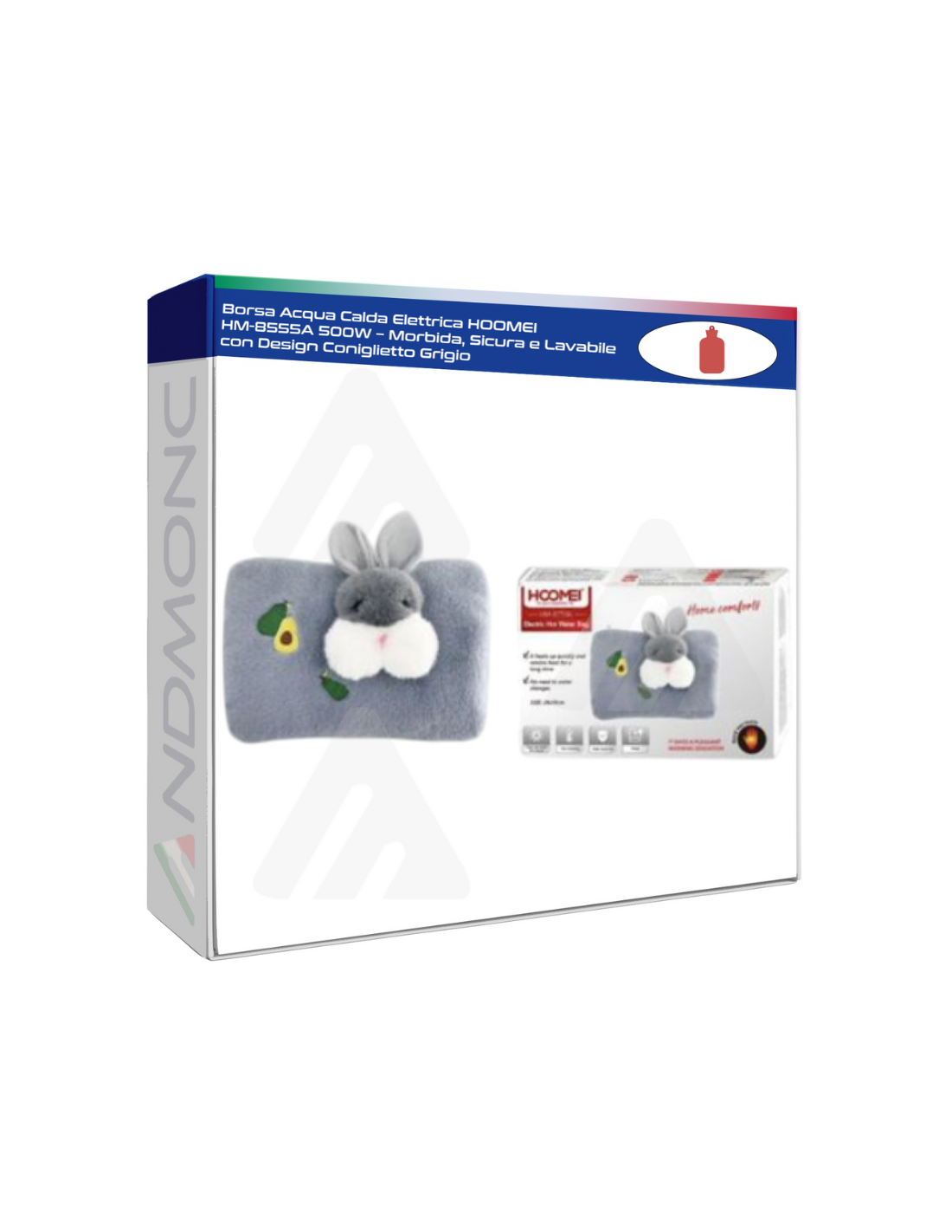 Borsa Acqua Calda Elettrica HOOMEI HM-8555A 500W – Morbida, Sicura e Lavabile con Design Coniglietto Grigio