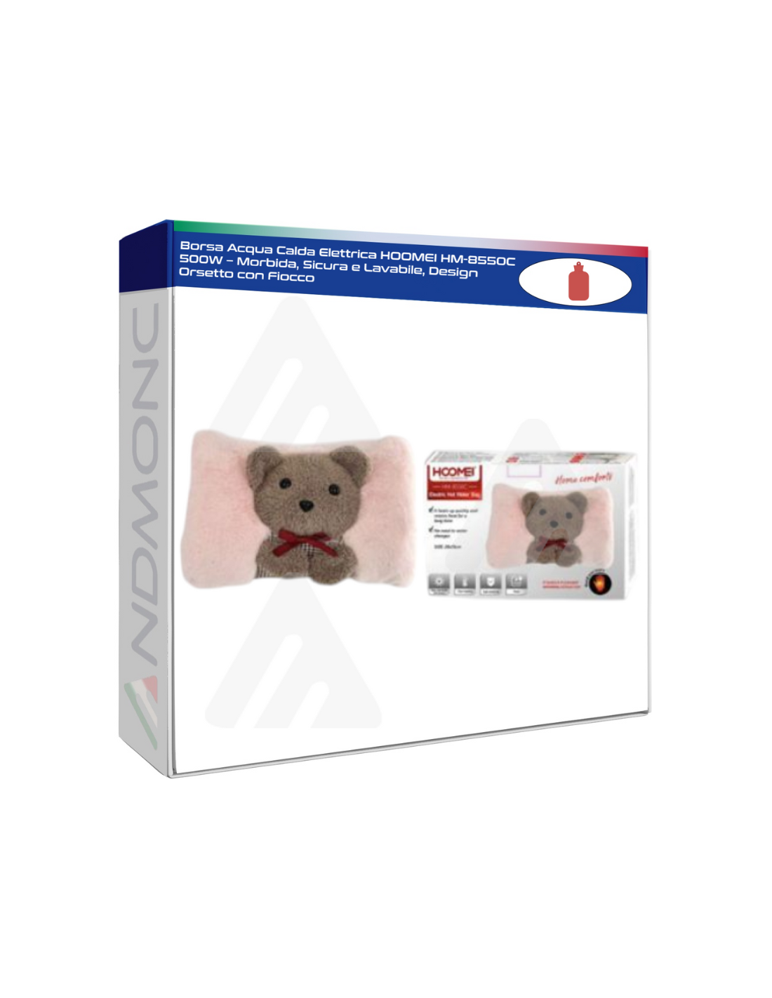 Borsa Acqua Calda Elettrica HOOMEI HM-8550C 500W – Morbida, Sicura e Lavabile, Design Orsetto con Fiocco