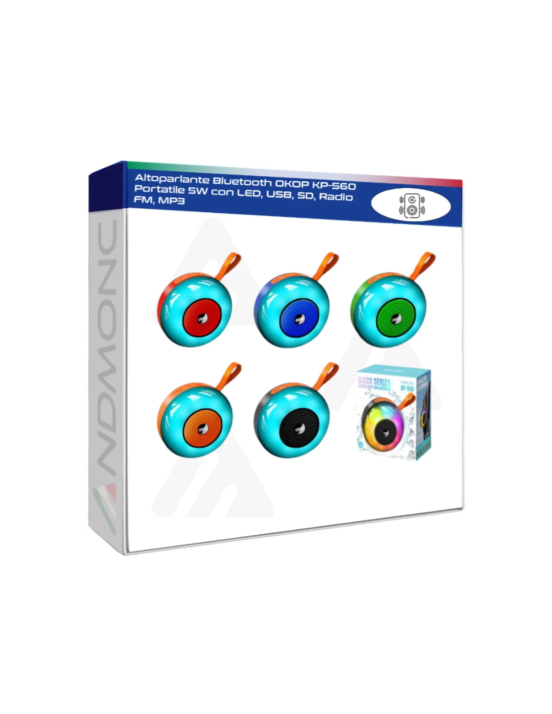 Altoparlante Bluetooth OKOP KP-560 Portatile 5W con LED, USB, SD, Radio FM, MP3