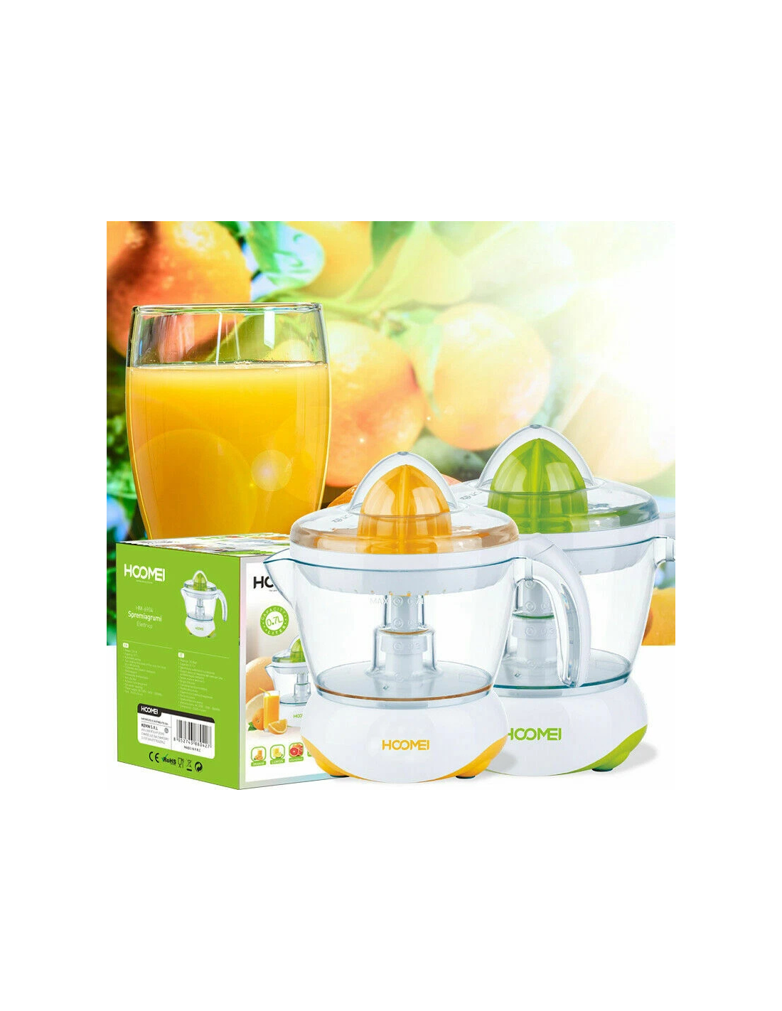 Il Hoomei HM-6905 è il spremiagrumi elettrico a pressione ideale per preparare spremute fresche da arance, limoni, pompelmi e altri agrumi. Con 25W di potenza, sfrutta il sistema a pressione per un'estrazione ottimale del succo, senza sprechi e con il massimo della freschezza.