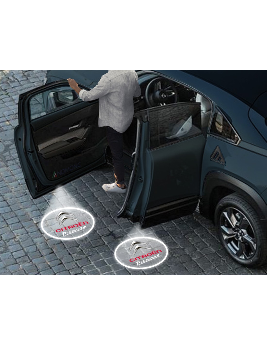 • Kit luci led sottoporta modello Carbonio, sensore automatico intelligente con Proiezione logo Citroen Picasso, kit da 2 o da 4 Porte