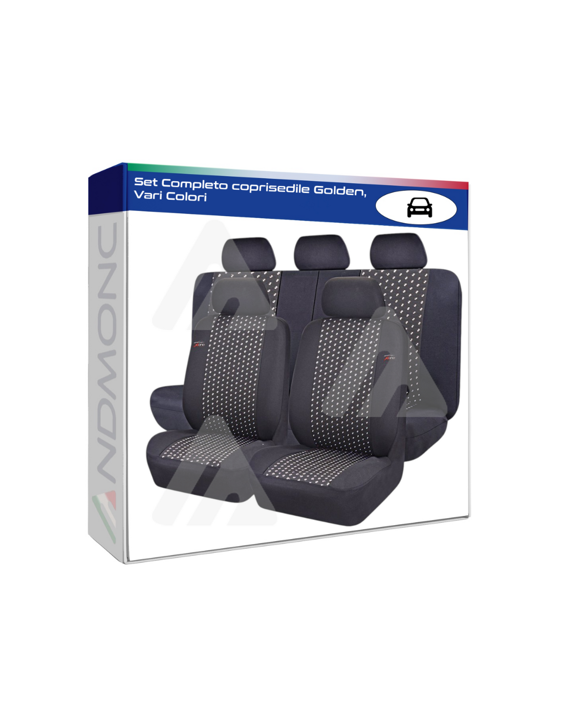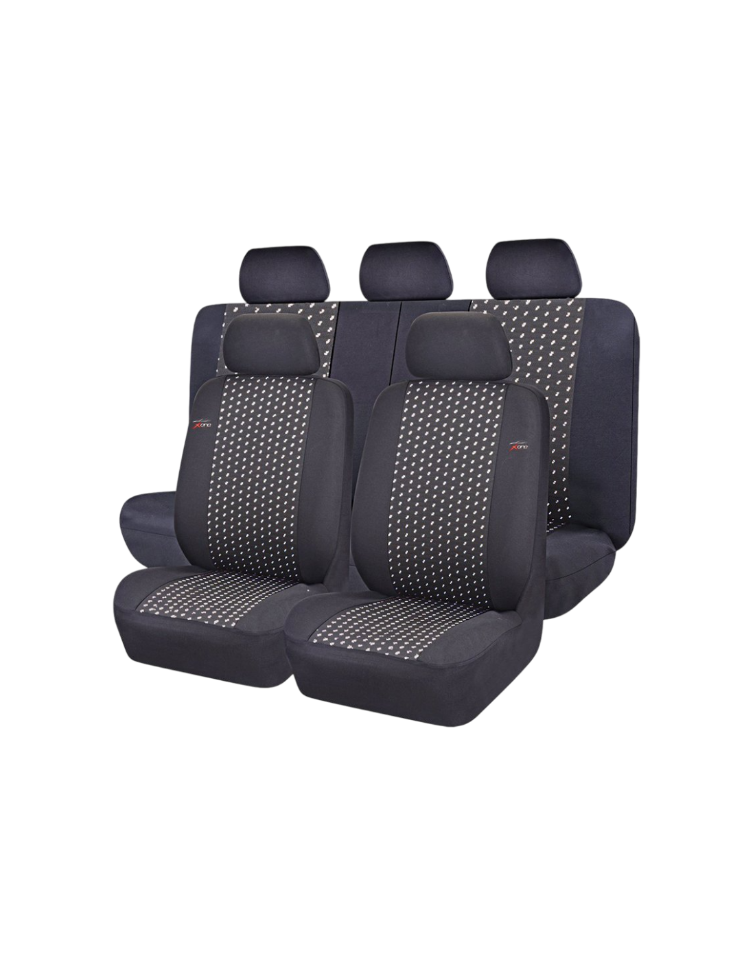 Set di fodere super eleganti, in cotone e poliestere con imbottitura di 3mm. 9 pezzi: 2 anteriori non separati, 2 posteriori separati con zip e pezzo aggiuntivo, 5 poggiatesta separati con bordatura elastica rinforzata.