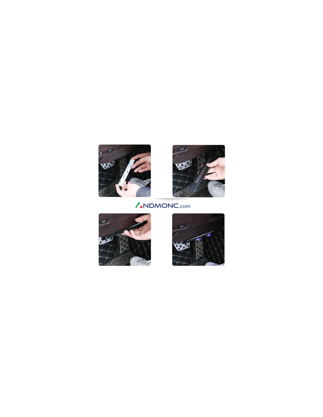 Prima basta staccare semplicemente il nastro biadesivo dietro ogni striscia e applicare le strisce LED sotto i sedili o nella zona del piede/pavimento.