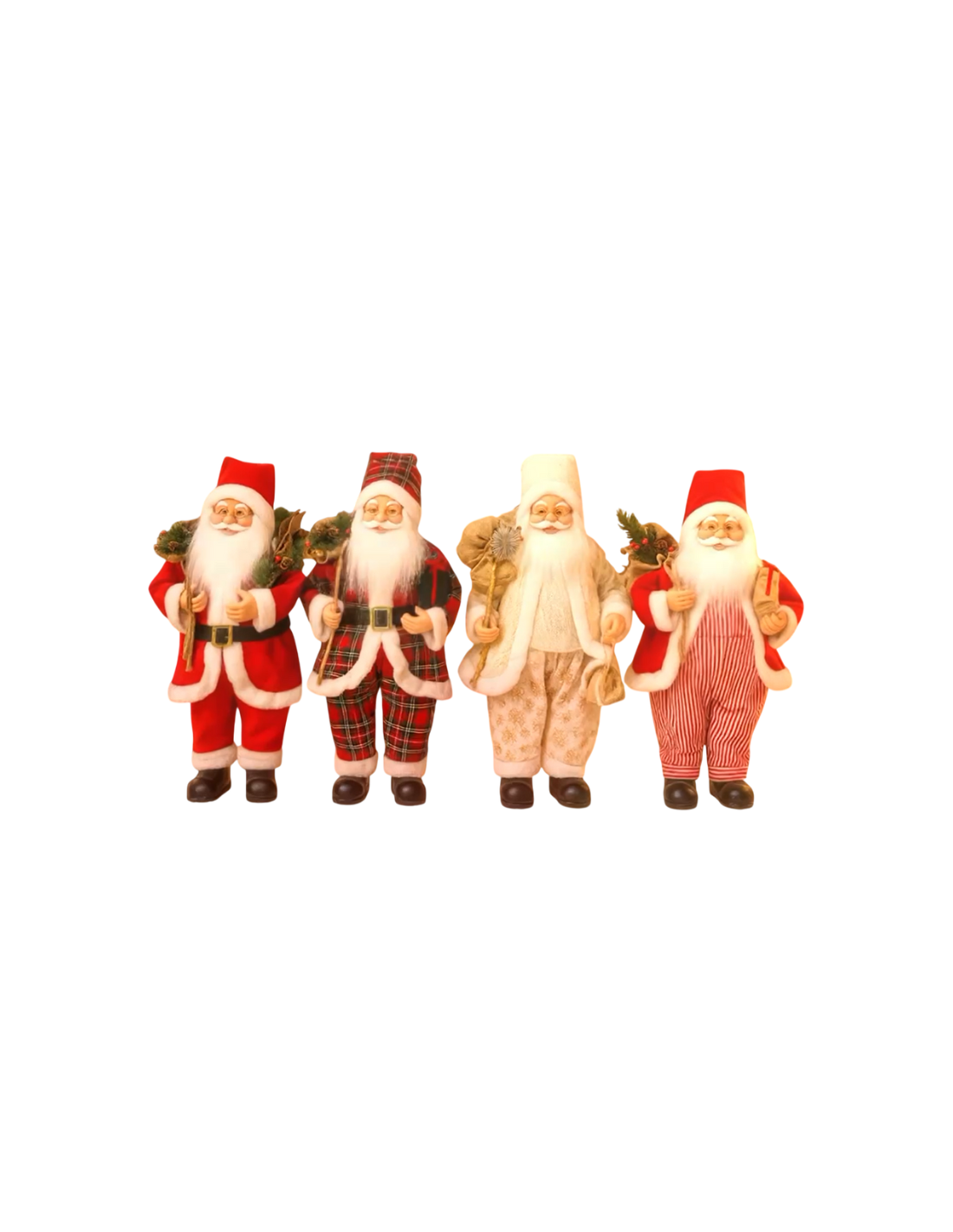 Modelli assortiti: diversi design di Babbo Natale, tutti curati nei dettagli e con abiti ricchi di decorazioni