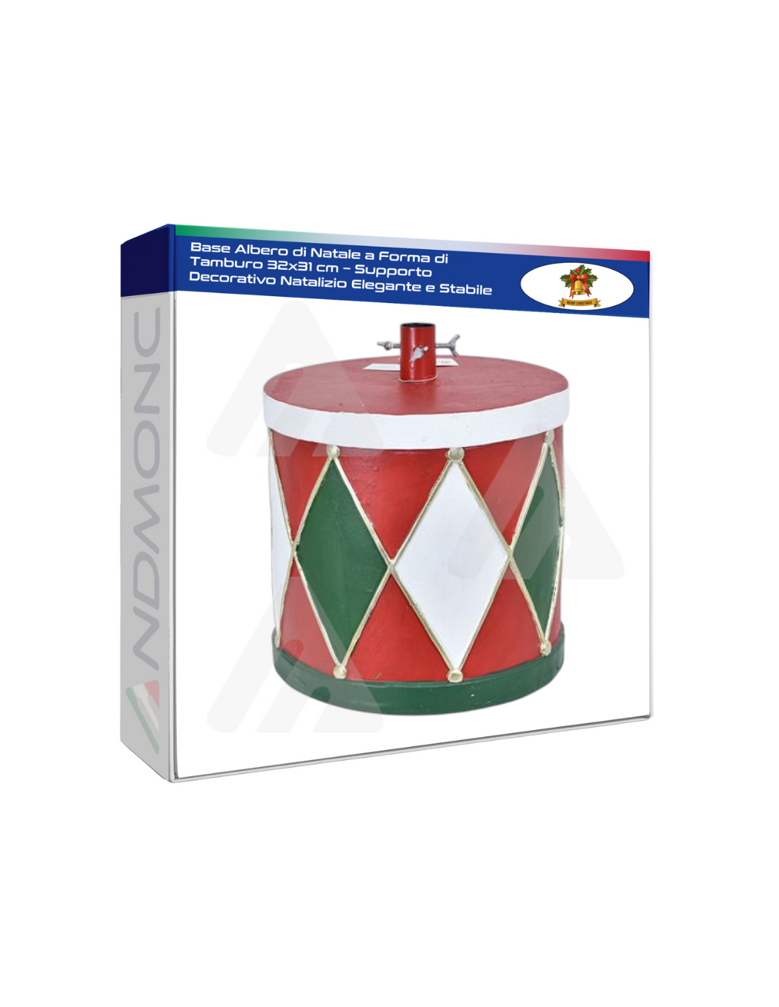 Con le sue dimensioni 32x31 cm, è perfetta per alberi di medie dimensioni, offrendo stabilità e un aspetto curato. Il design ispirato ai classici tamburi natalizi aggiunge colore, calore e tradizione all’ambiente.