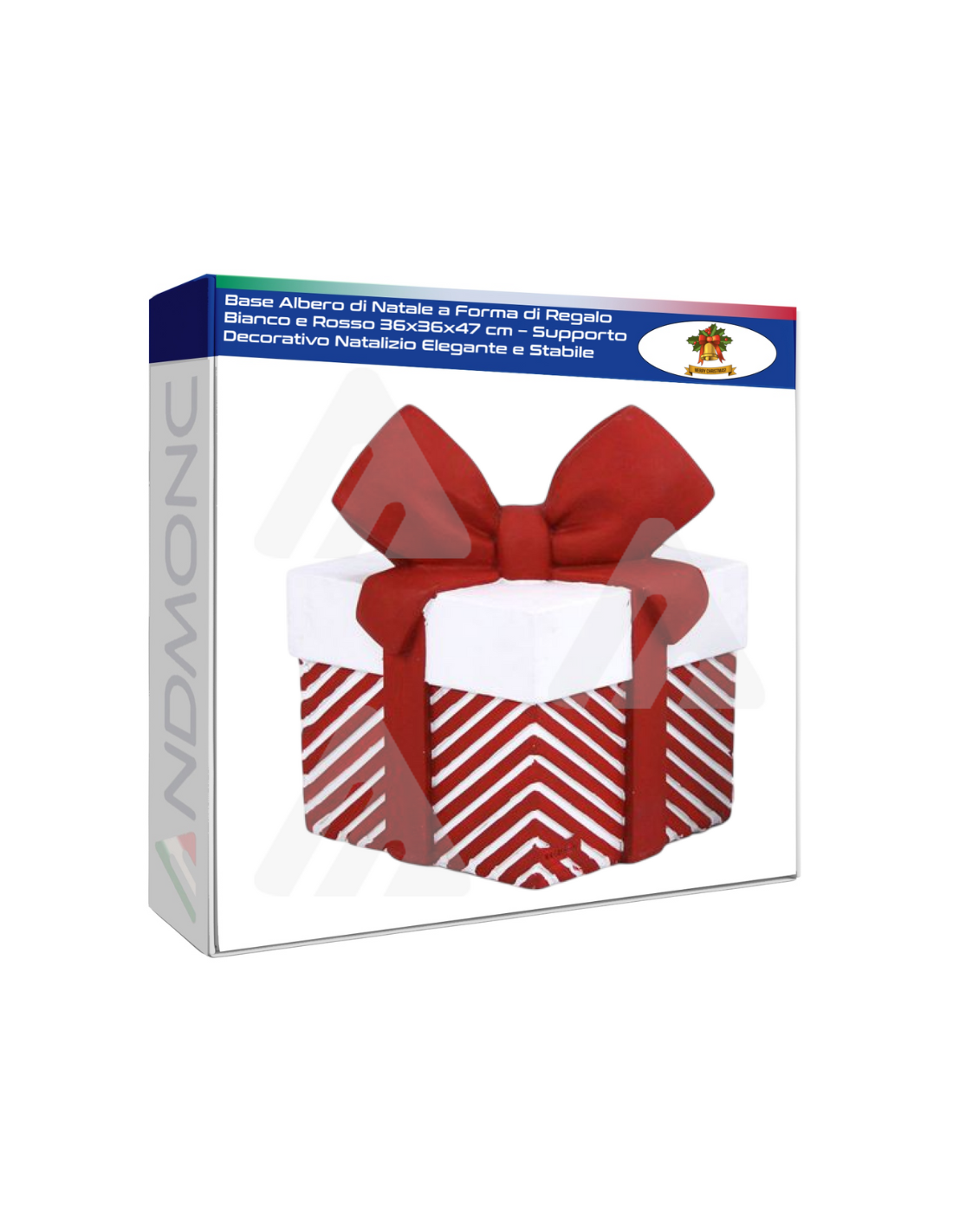 Base Albero di Natale a Forma di Regalo Bianco e Rosso 36x36x47 cm – Supporto Decorativo Natalizio Elegante e Stabile