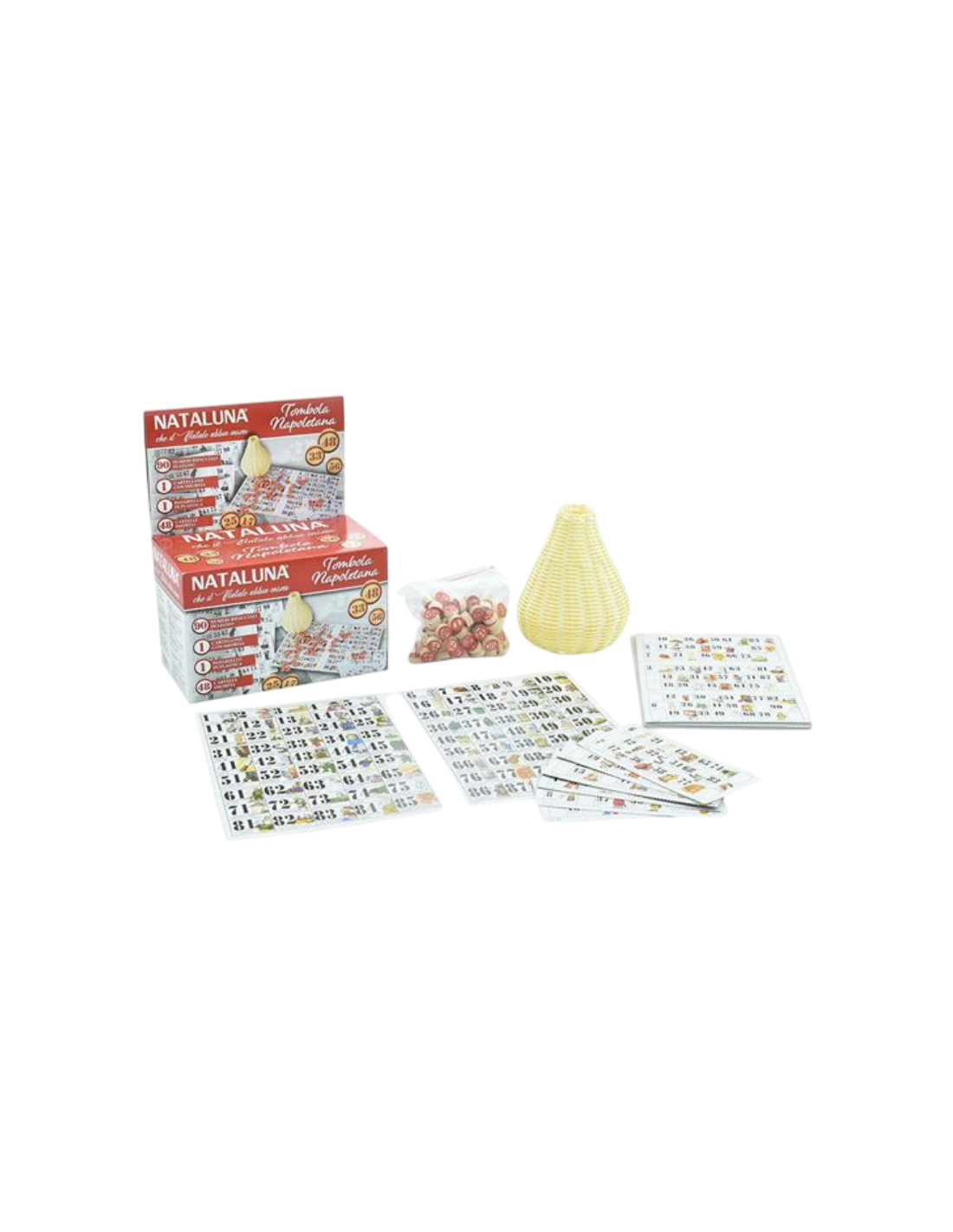 Rivivi la vera tradizione del Natale con la Tombola Napoletana originale, completa di 48 cartelle, 90 numeri e cesto per l’estrazione.