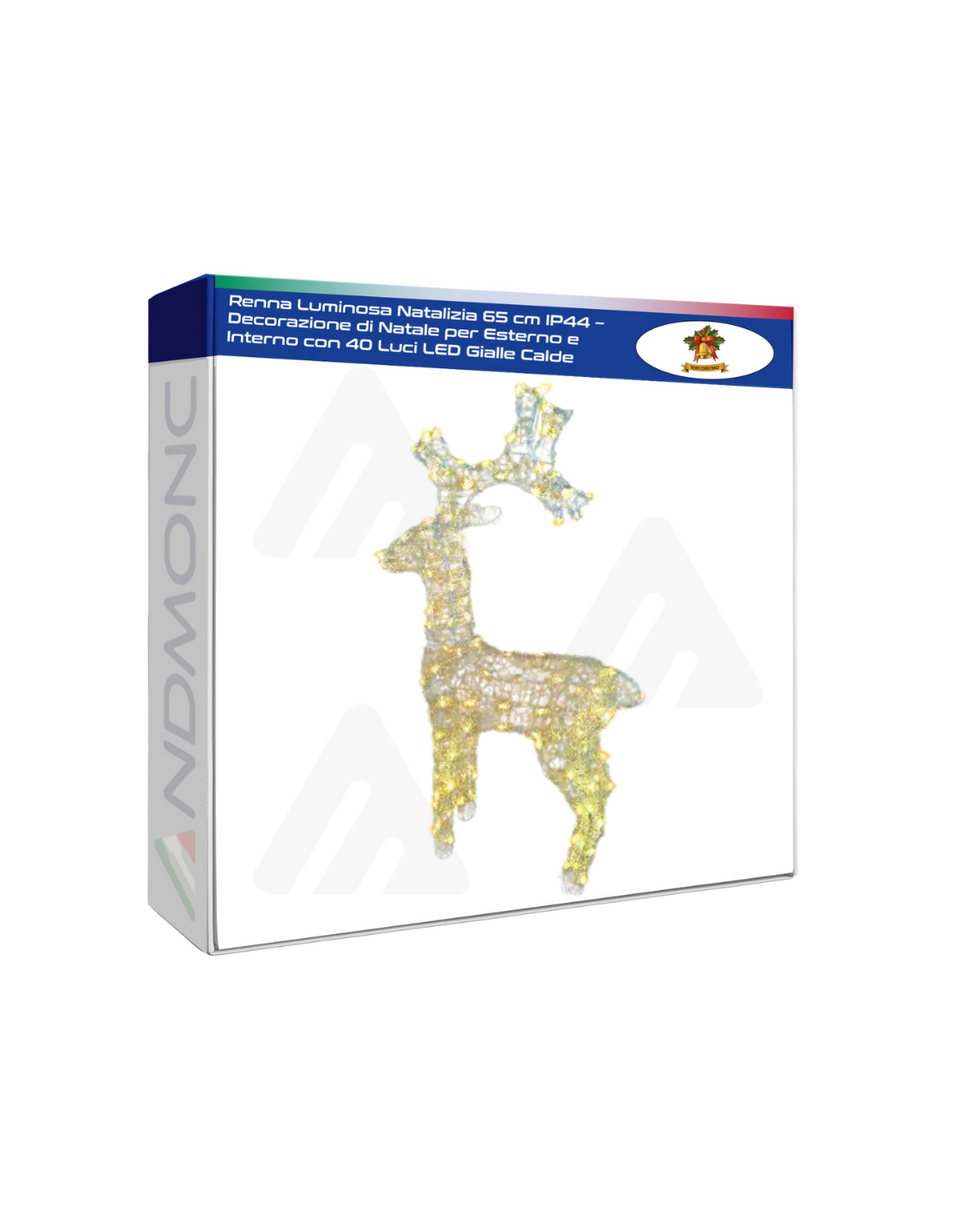 Renna Luminosa Natalizia 65 cm IP44 – Decorazione di Natale per Esterno e Interno con 40 Luci LED Gialle Calde