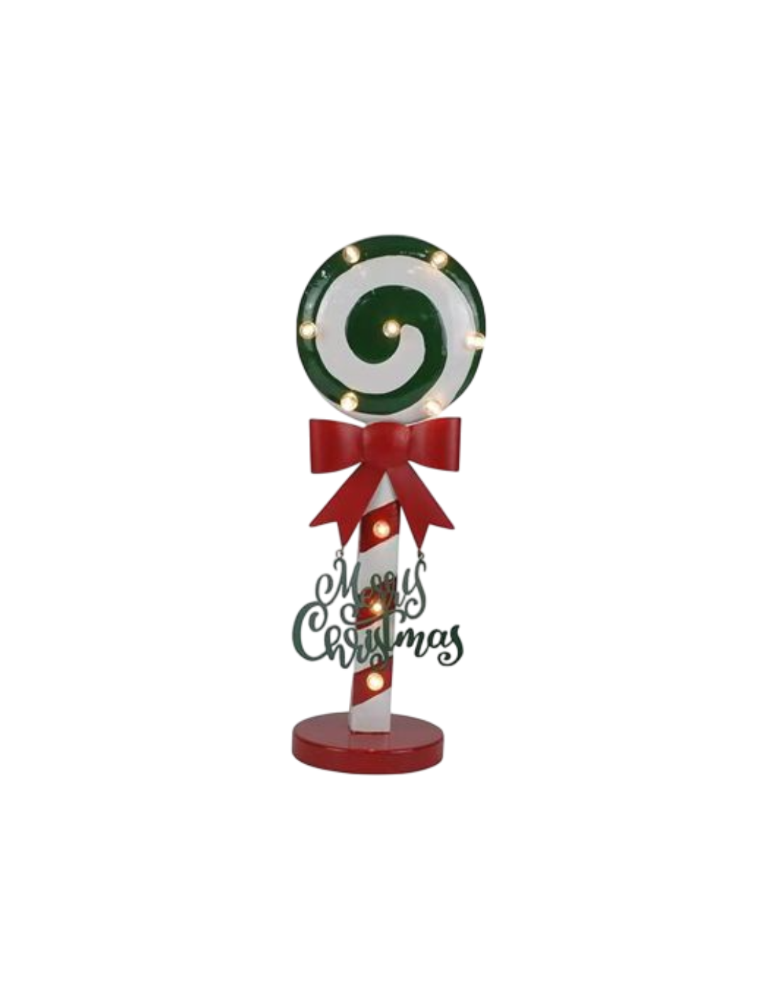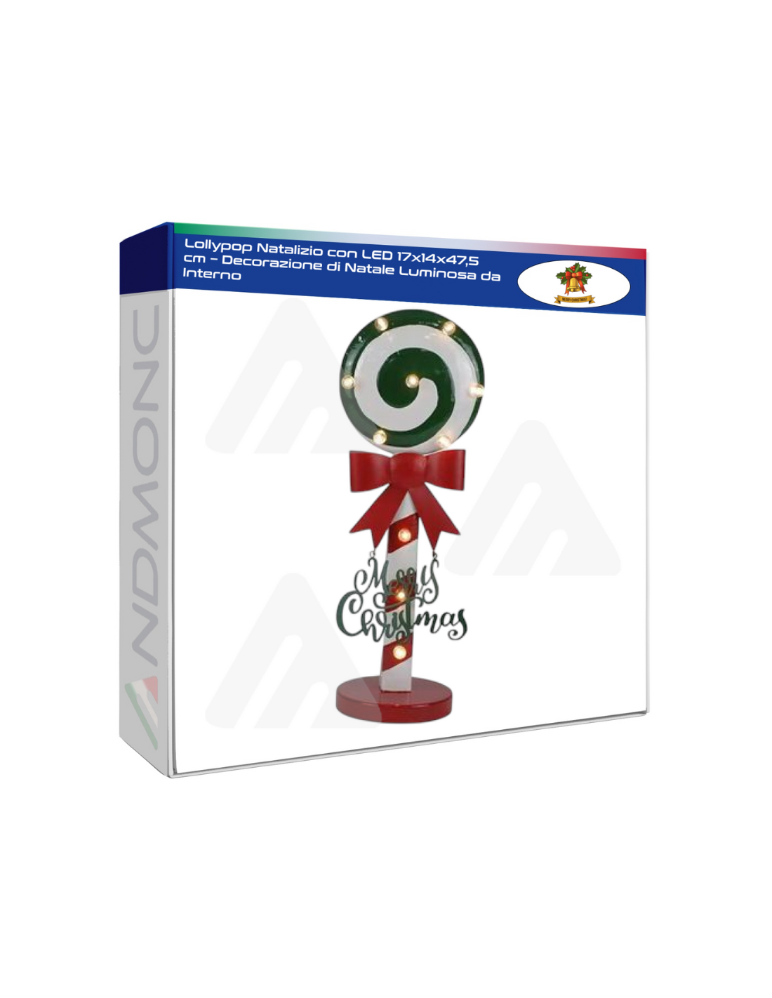 Aggiungi un tocco dolce e brillante alle tue feste con il Lollypop Natalizio con luci LED, una decorazione luminosa allegra e scenografica ideale per completare il tuo allestimento natalizio. Con dimensioni 17 x 14 x 47,5 cm, questo grande lecca-lecca luminoso è perfetto per essere esposto vicino all’albero, su mensole, all’ingresso di casa o come elemento decorativo in negozi, pasticcerie e vetrine a tema Natale.