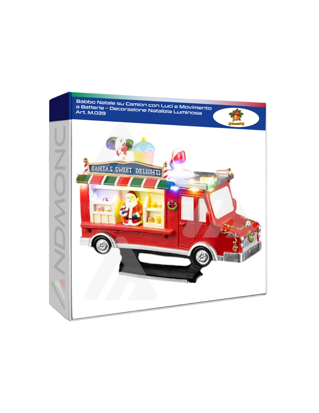 Babbo Natale su Camion con Luci e Movimento a Batterie – Decorazione Natalizia Luminosa Art. M.039