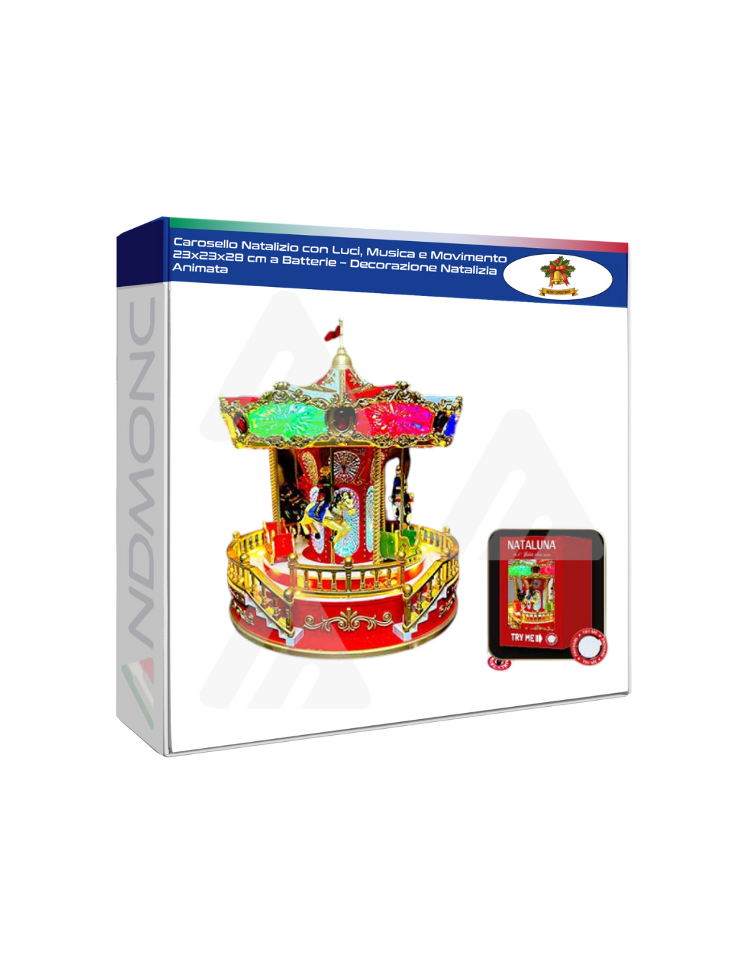 Carosello Natalizio con Luci, Musica e Movimento 23x23x28 cm a Batterie – Decorazione Natalizia Animata