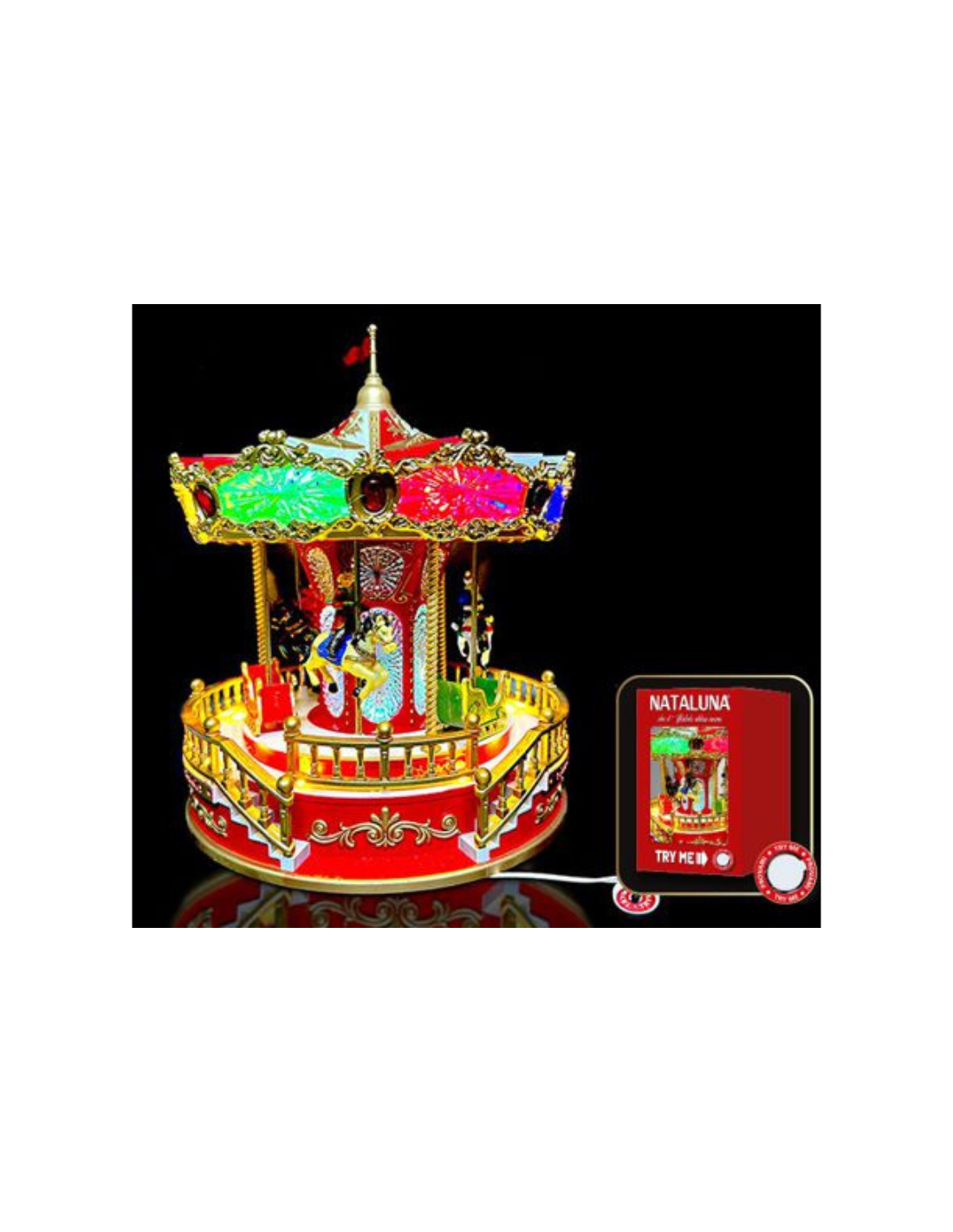 La giostra, ricca di dettagli e colori vivaci, prende vita grazie al movimento rotante, alle luci LED brillanti e alle melodie natalizie che rendono la scena ancora più suggestiva. Il funzionamento a batterie permette di posizionarlo ovunque, senza vincoli di prese elettriche.