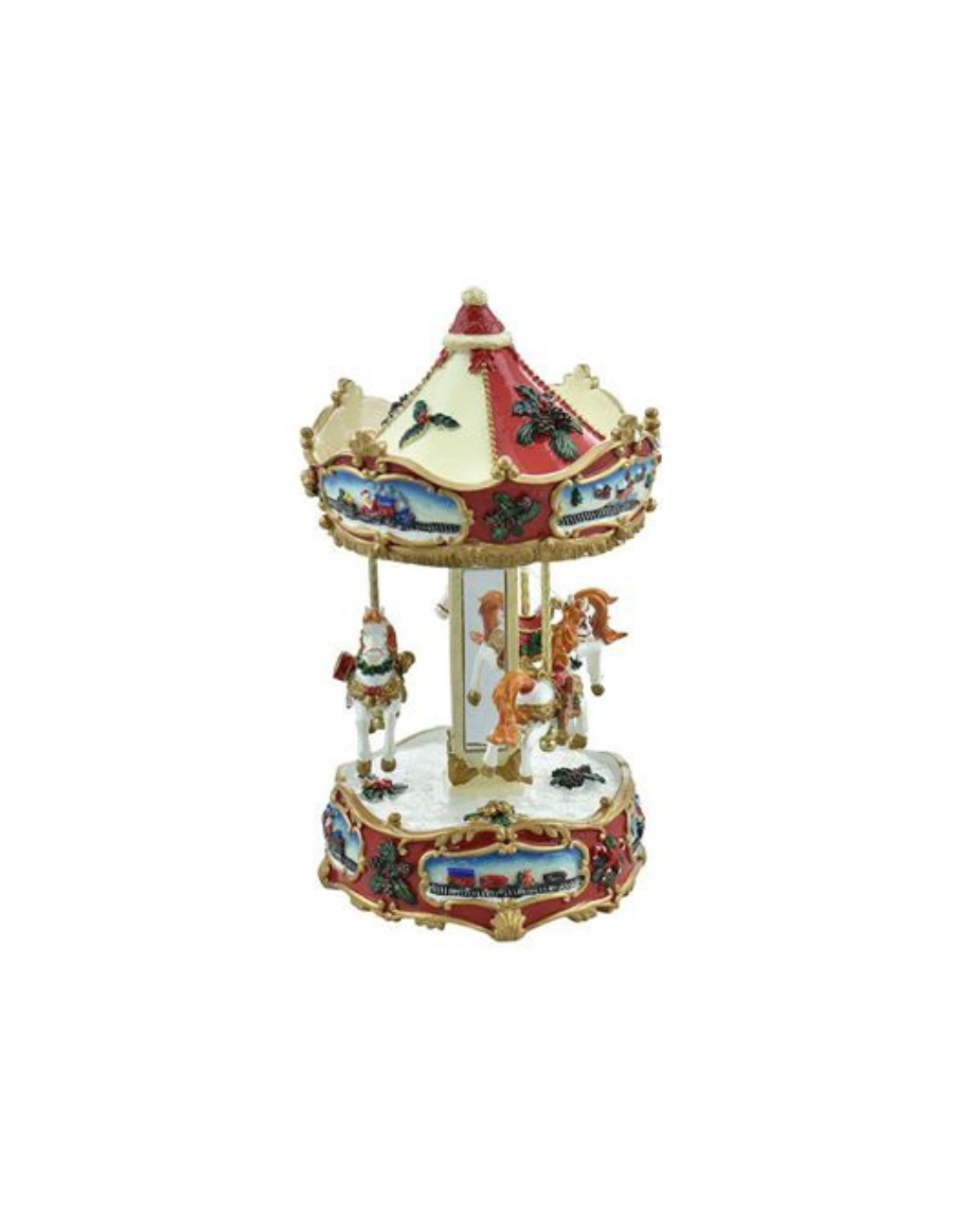 Aggiungi magia e tradizione al tuo Natale con questa raffinata giostra carillon rossa, un oggetto decorativo capace di emozionare grandi e piccoli.