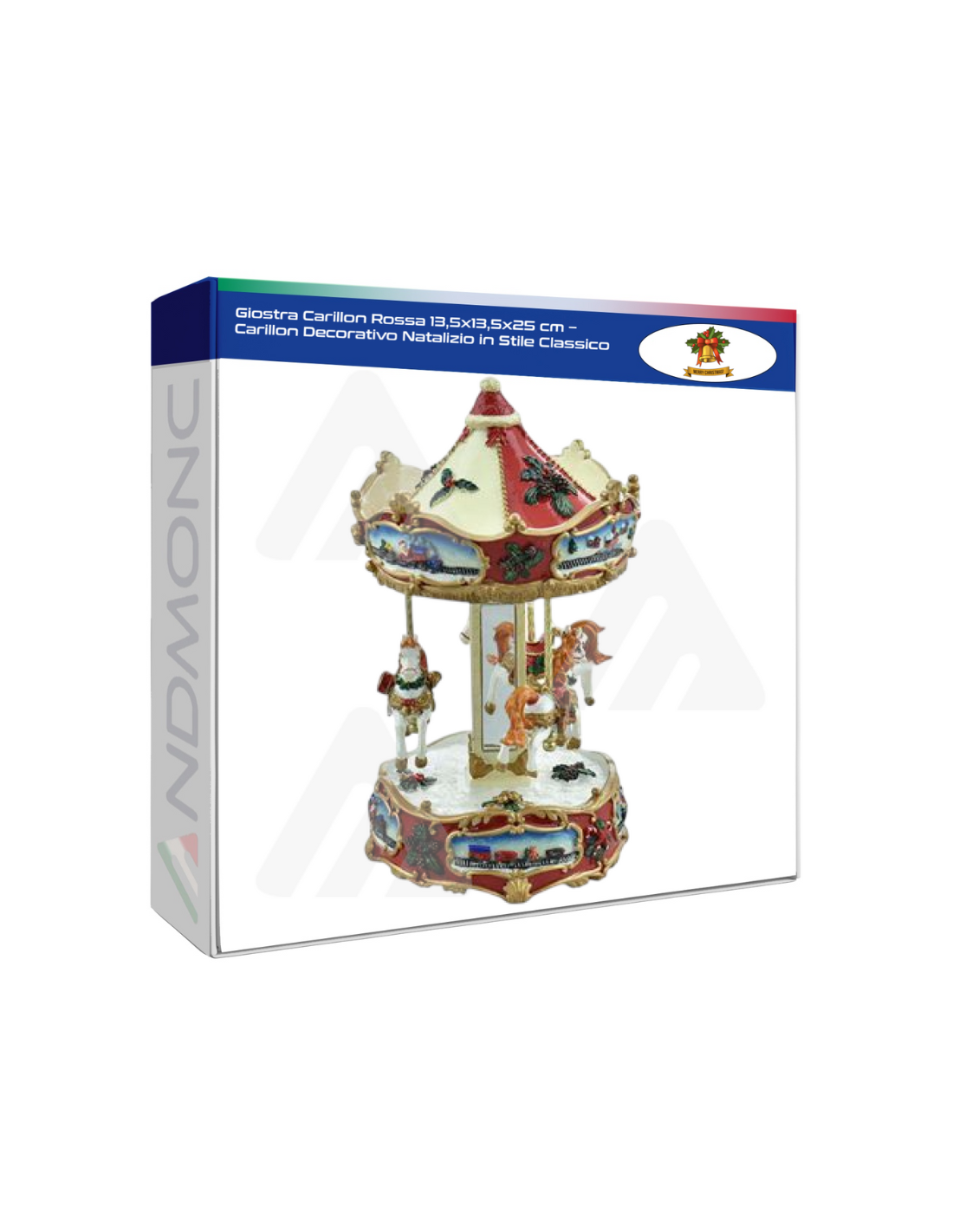 Giostra Carillon Rossa 13,5x13,5x25 cm – Carillon Decorativo Natalizio in Stile Classico