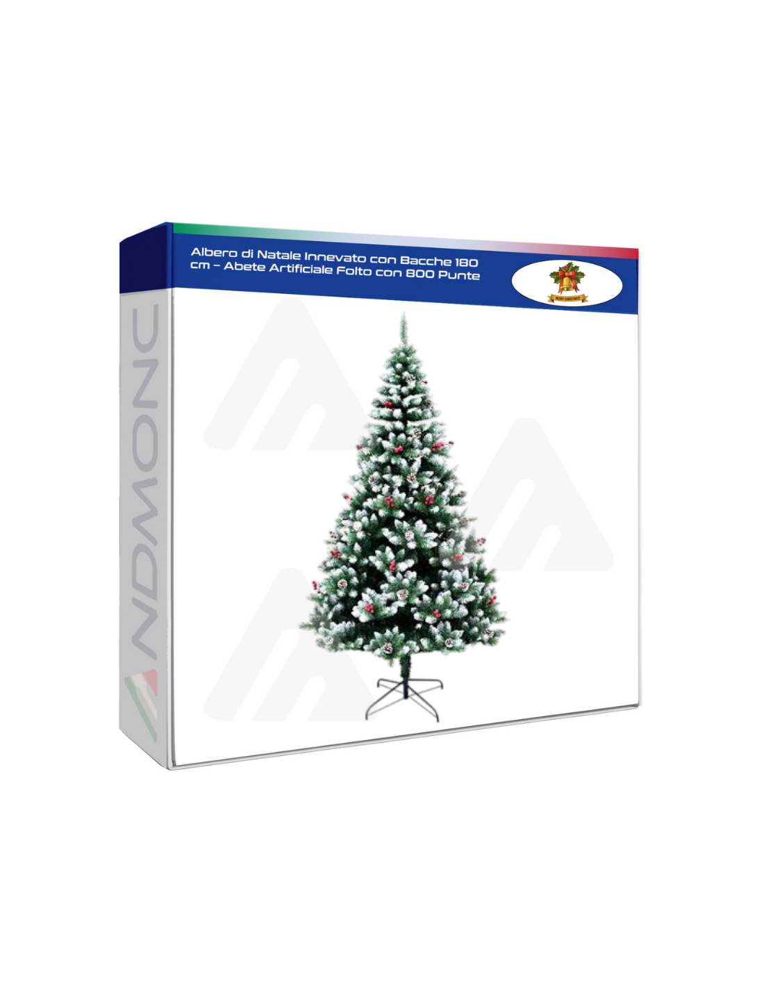 Albero di Natale Innevato con Bacche 180 cm – Abete Artificiale Folto con 800 Punte
