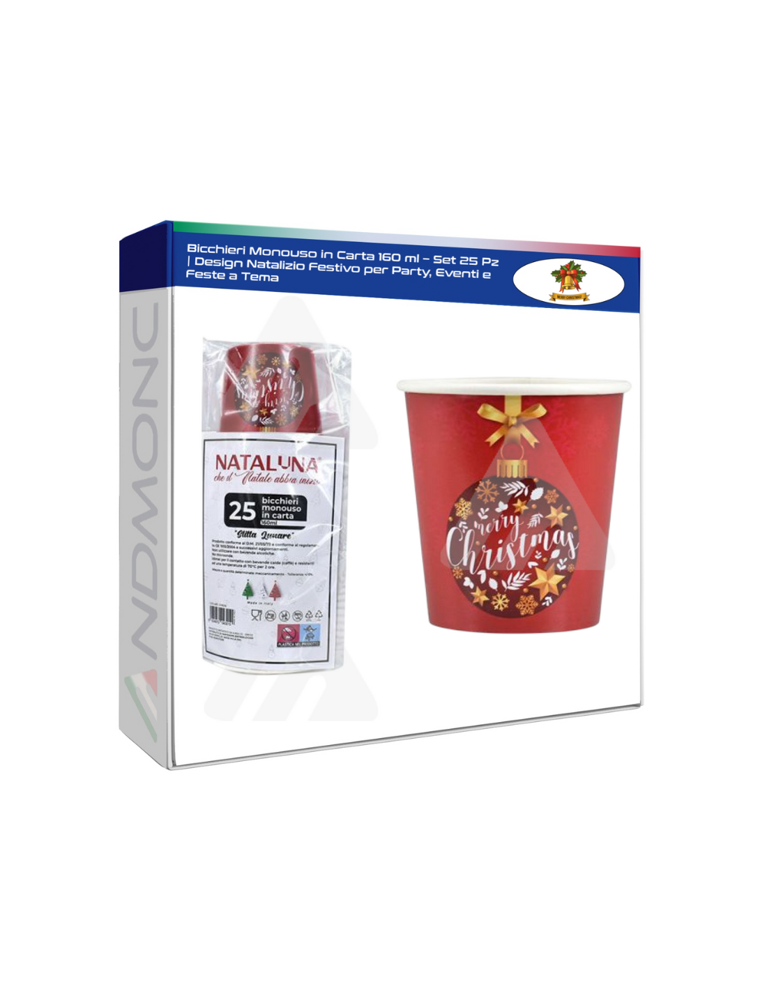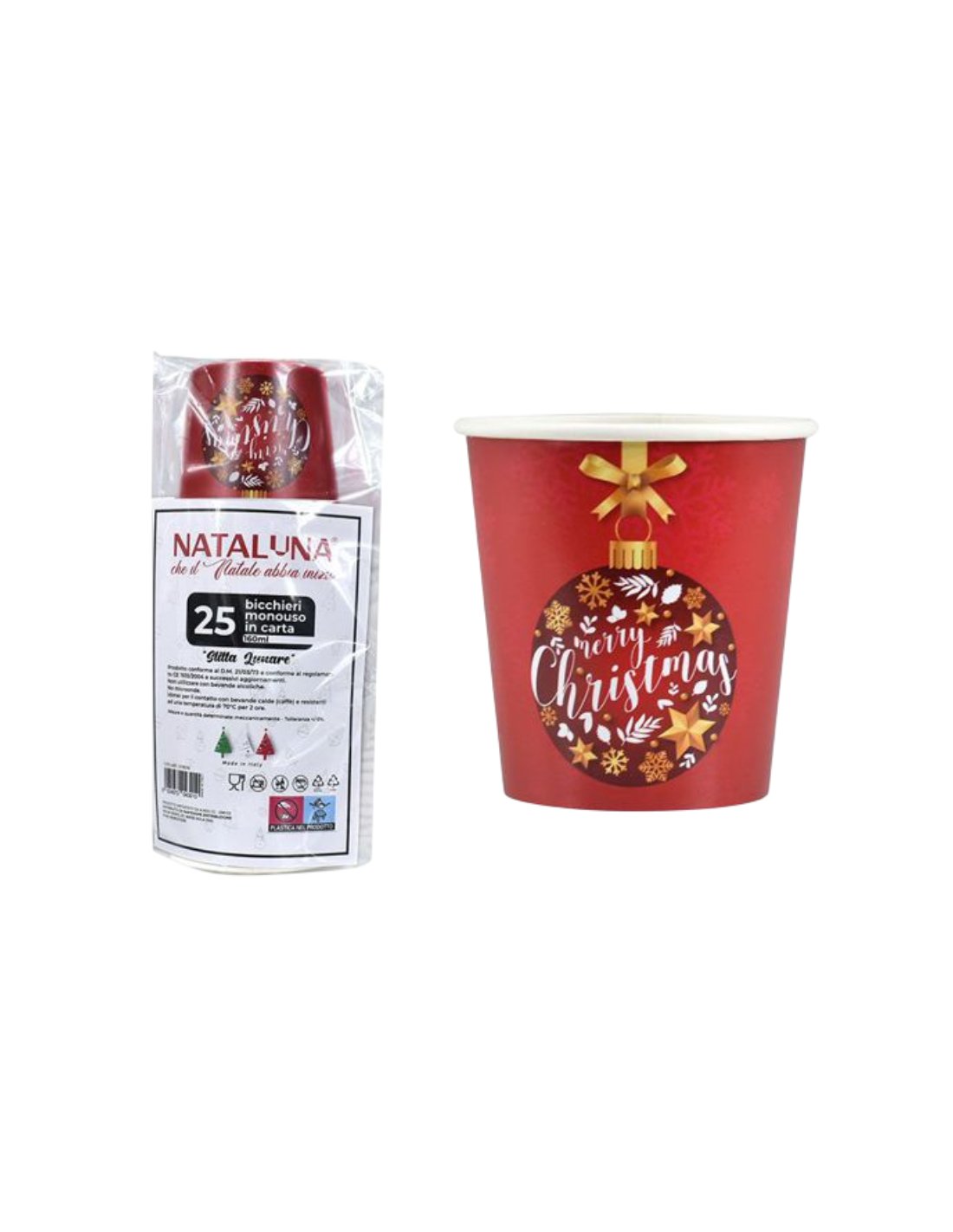 Bicchieri Monouso in Carta 160 ml – Set 25 Pz Design Natalizio Festivo per Party, Eventi e Feste a Tema