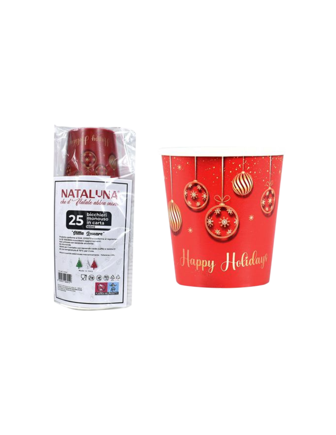 Bicchieri Monouso in Carta 160 ml – 25 Pezzi Design Natalizio Art.4 per Feste ed Eventi