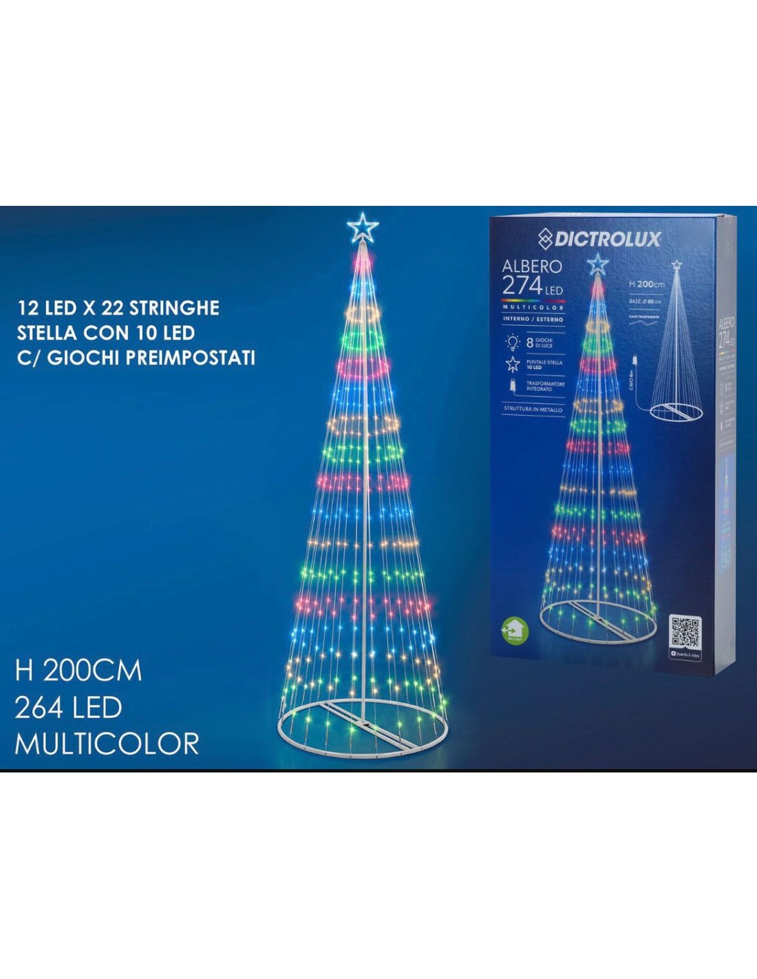 • Albero di Natale Luminoso a Cono 274 LED h200cm , base 60 cm Multicolor