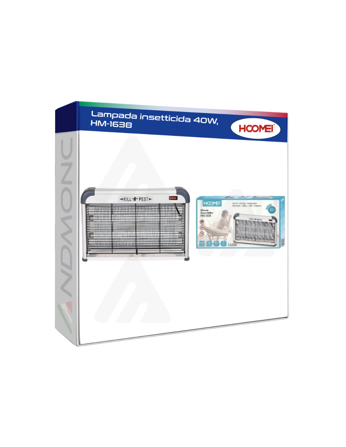 Lampada Insetticida HOOMEI HM-1638 – 40W, UV, Alluminio, Copertura 80 m²