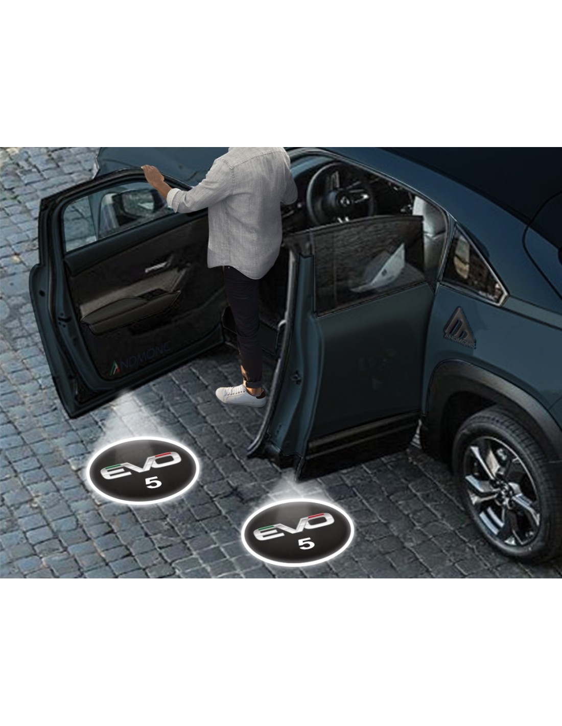 • Kit luci led sottoporta modello Carbonio, sensore automatico intelligente con Proiezione logo EVO 5, kit da 2 o da 4 Porte