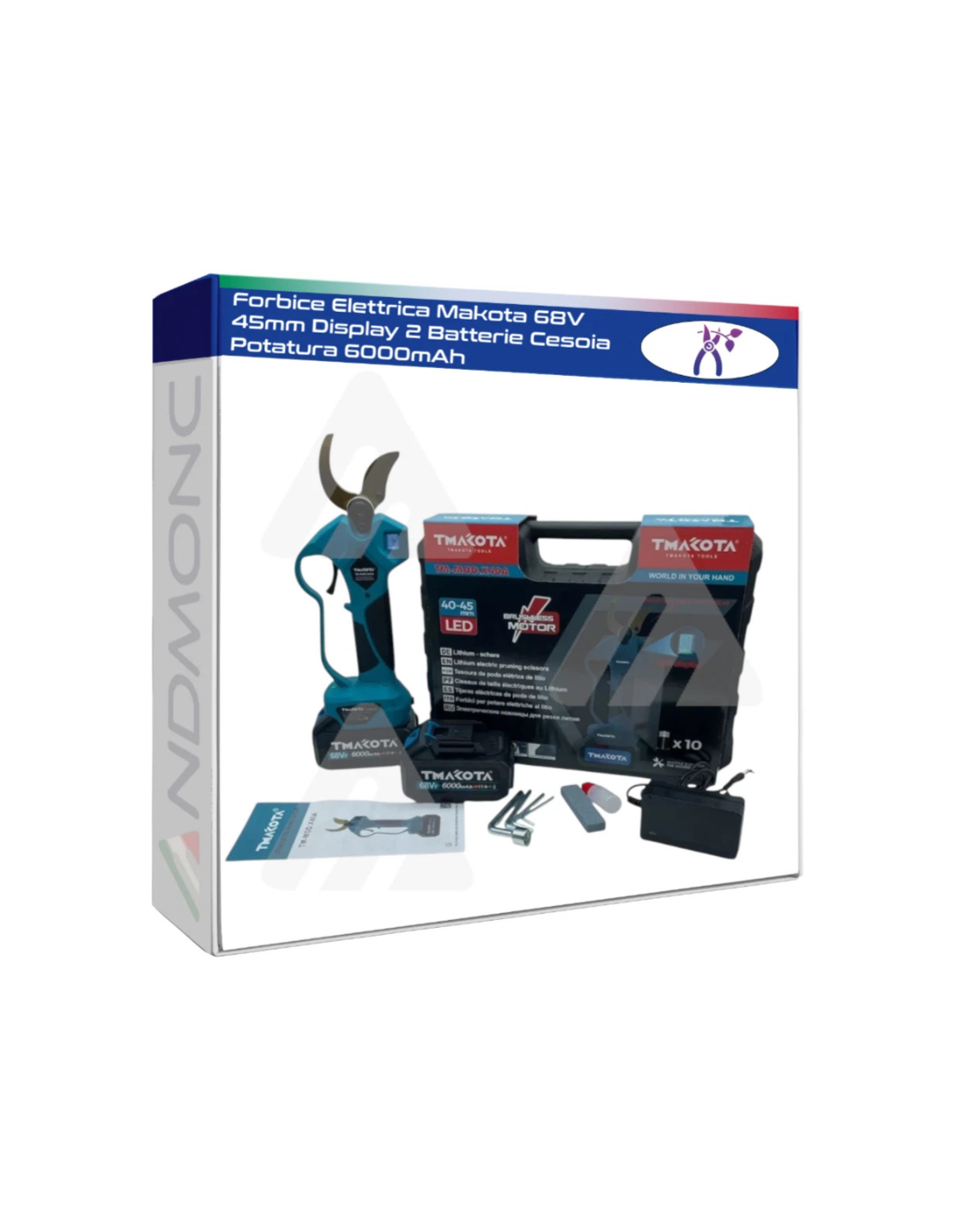 Forbice Elettrica Makota 68V 45mm Display 2 Batterie Cesoia Potatura 6000mAh