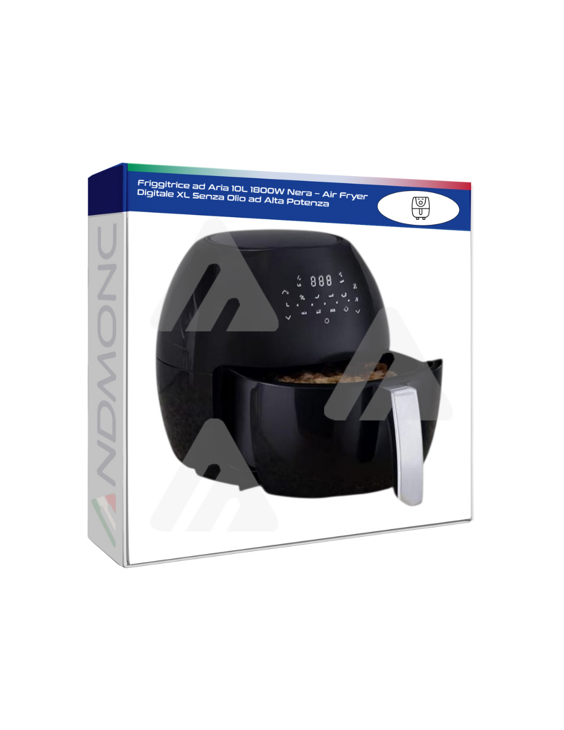 Friggitrice ad Aria 10L 1800W Nera – Air Fryer Digitale XL Senza Olio ad Alta Potenza