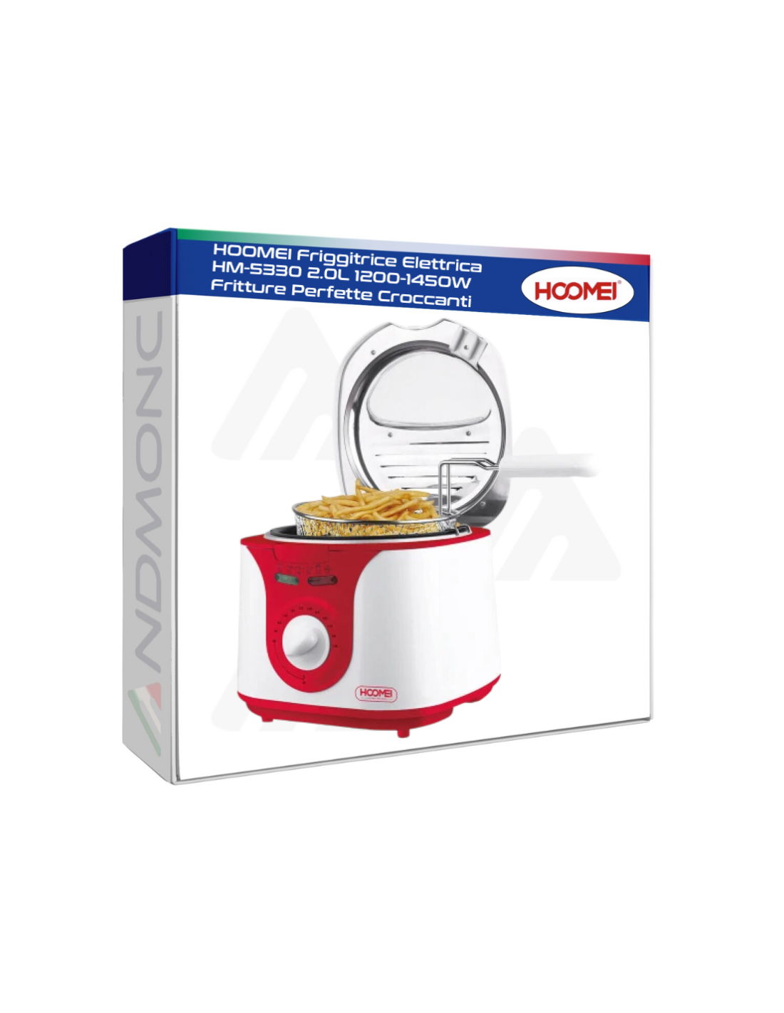 Ottieni fritture perfette e croccanti con la Friggitrice Elettrica HM-5330. Con una capacità di 2.0L e una potenza regolabile da 1200 a 1450W, questa friggitrice è progettata per ottenere risultati professionali in pochissimo tempo. Ideale per patatine, crocchette, pesce e altri piatti fritti, offre una cottura uniforme e un'ottima croccantezza senza assorbire troppo olio.