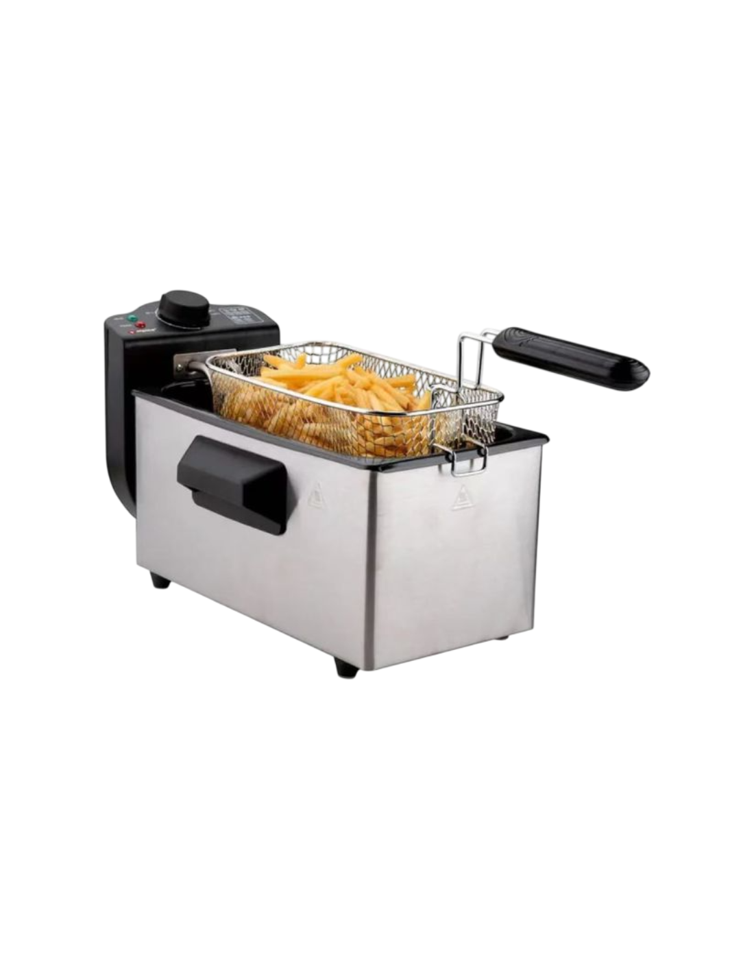 La struttura in acciaio inox assicura resistenza, durata nel tempo e facilità di pulizia. Il termostato regolabile permette di impostare la temperatura ideale in base agli alimenti, mentre il cestello estraibile con manico termoisolante garantisce sicurezza e praticità durante l’uso.