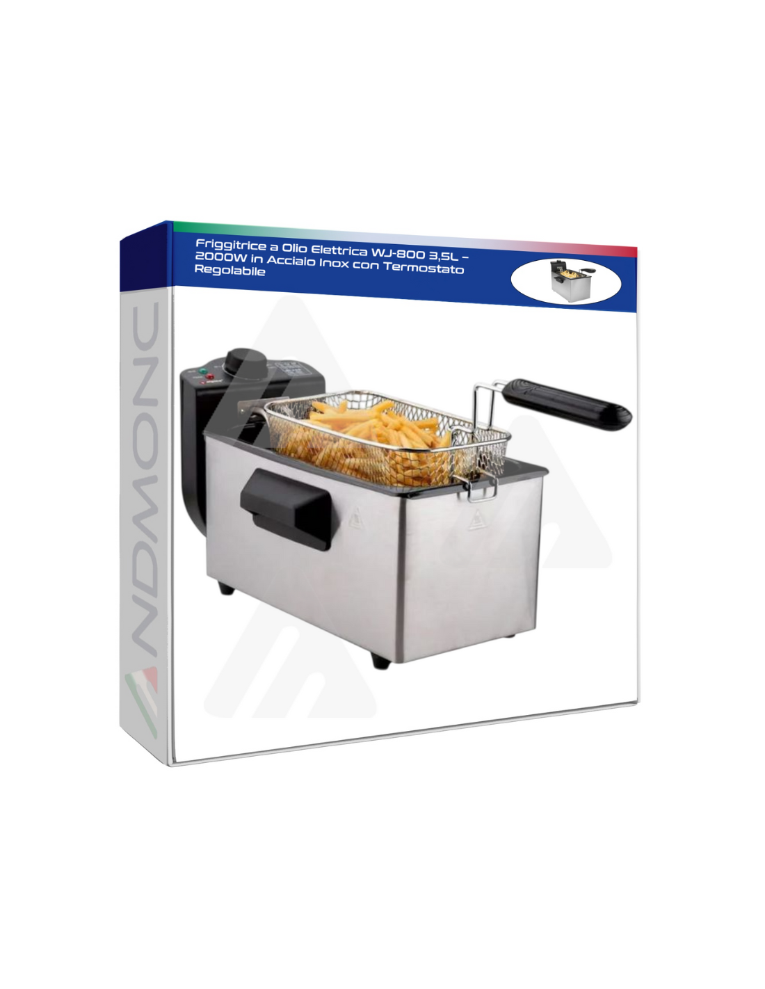 Friggitrice a Olio Elettrica WJ-800 3,5L – 2000W in Acciaio Inox con Termostato Regolabile