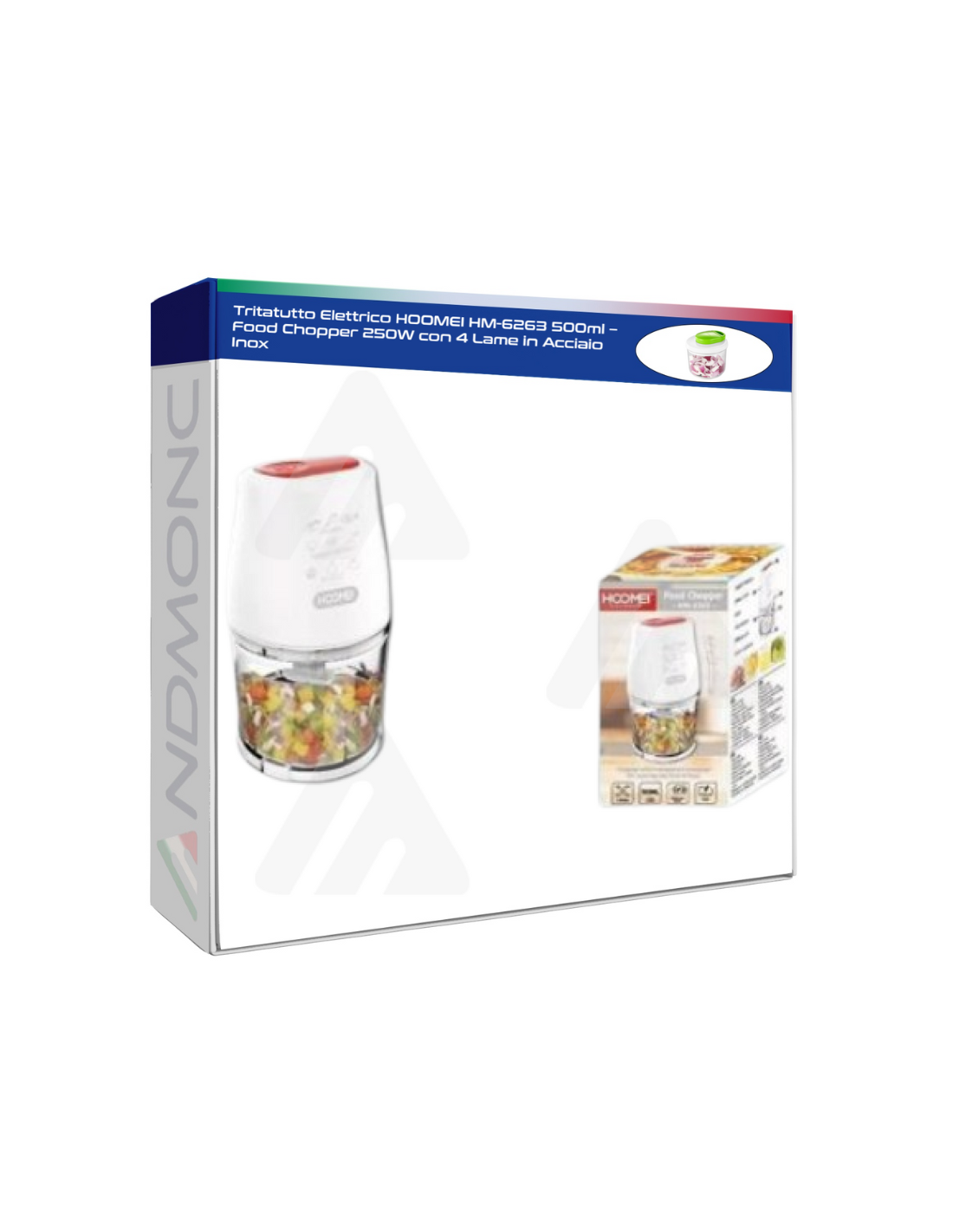Tritatutto Elettrico HOOMEI HM-6263 500ml – Food Chopper 250W con 4 Lame in Acciaio Inox