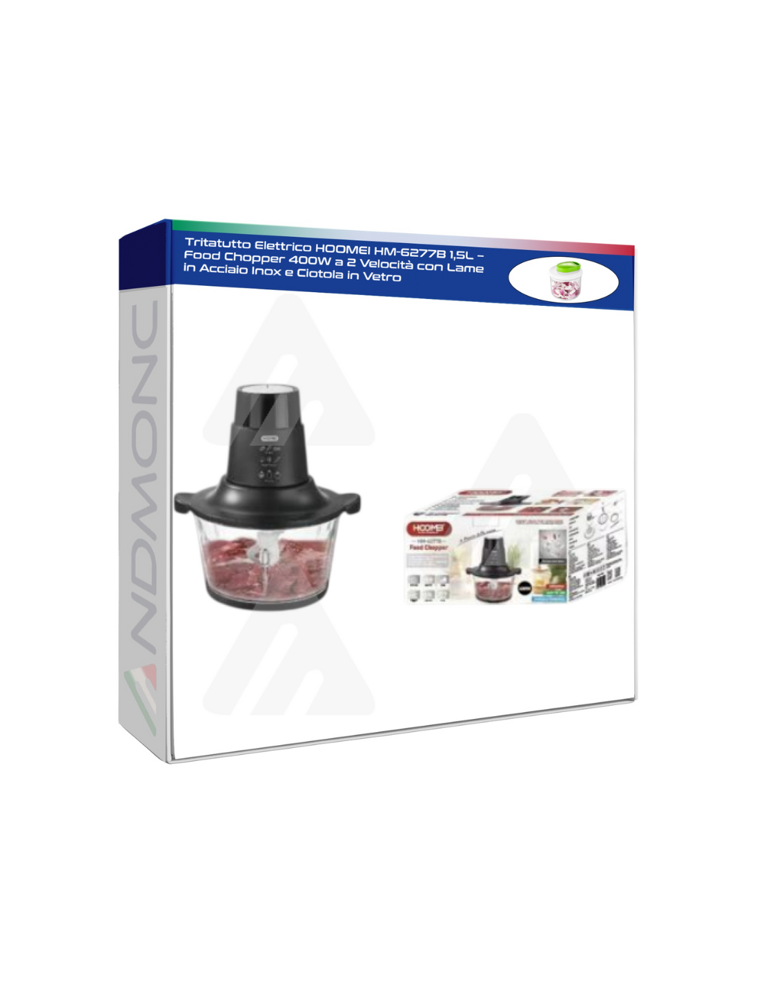 Tritatutto Elettrico HOOMEI HM-6277B 1,5L – Food Chopper 400W a 2 Velocità con Lame in Acciaio Inox e Ciotola in Vetro