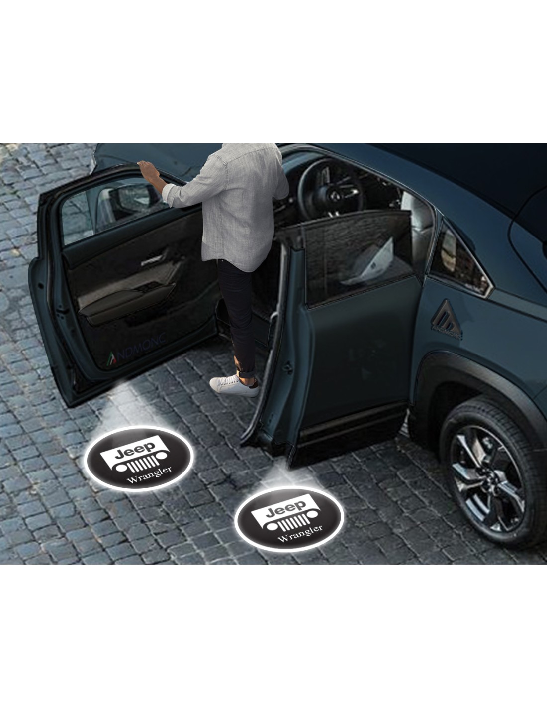 • Kit luci led sottoporta con Proiezione logo Jeep Wrangler, kit da 2 o da 4 Porte