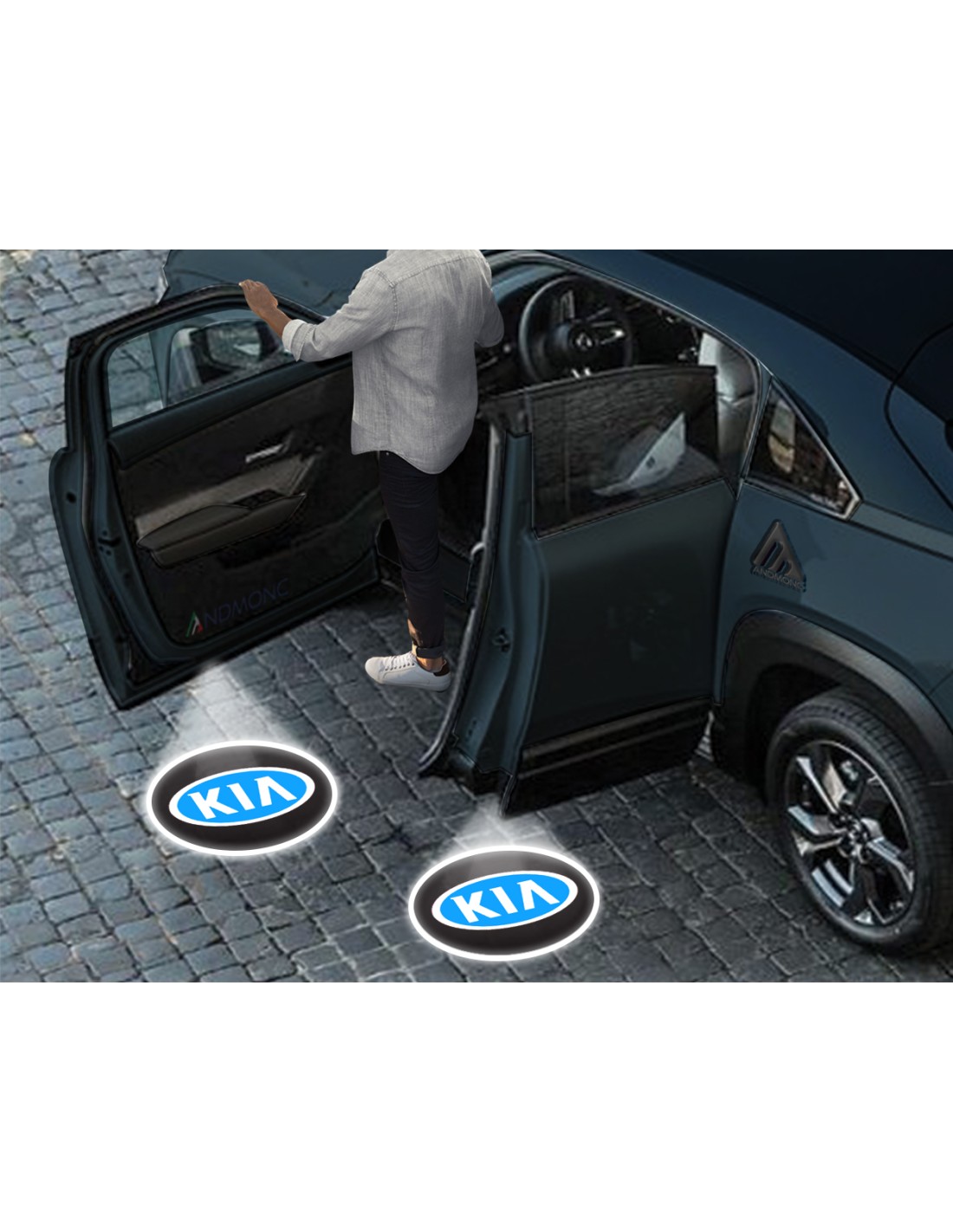 • Kit luci led sottoporta con Proiezione logo Kia logo blu, kit da 2 o da 4 Porte