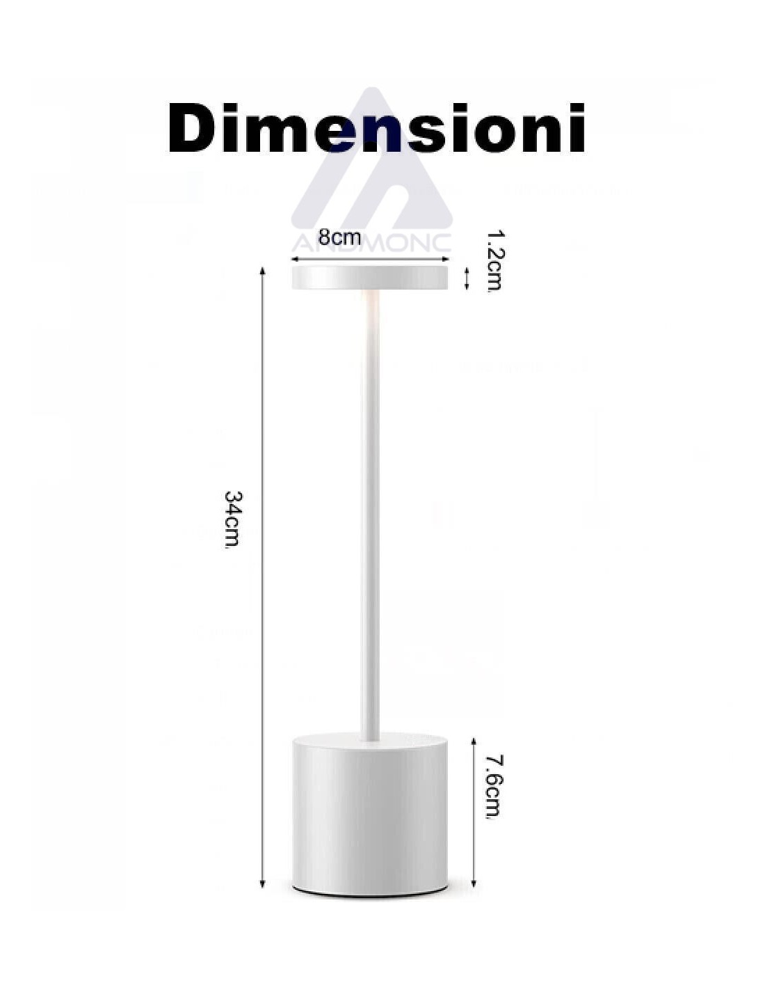 La particolarità di questa lampada è il pulsante touch posto sul paralume che permette non solo di accendere e spegnere la lampada ma anche di selezionare l'intensità del colore. Inoltre tenendo premuto il pulsante touch si puo aumentare o diminuire l'intensità luminosa.