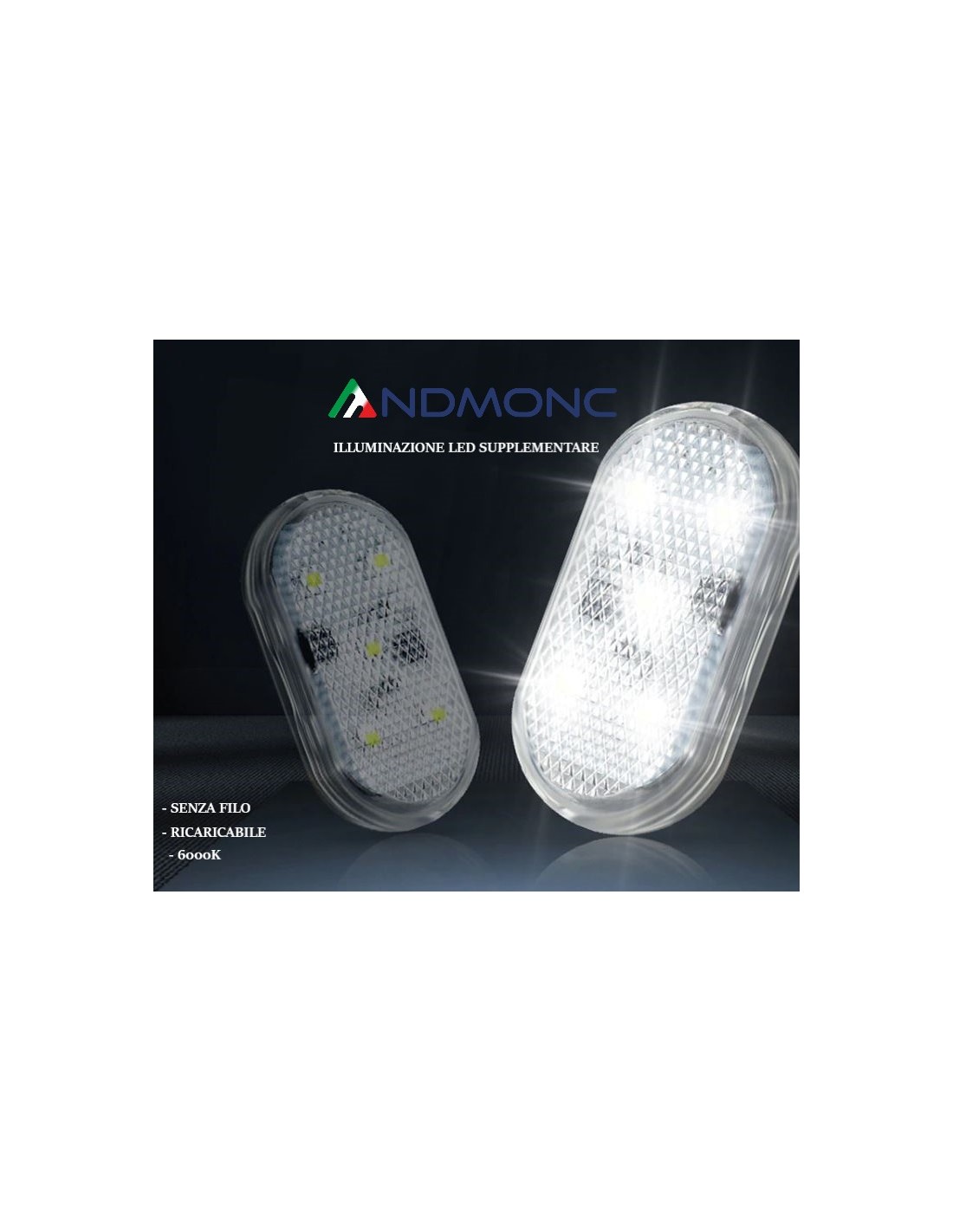 • ILLUMINAZIONE LED SUPPLEMENTARE ANTIPOZZANGHERA SENZA FILO RICARICABILE 6000K