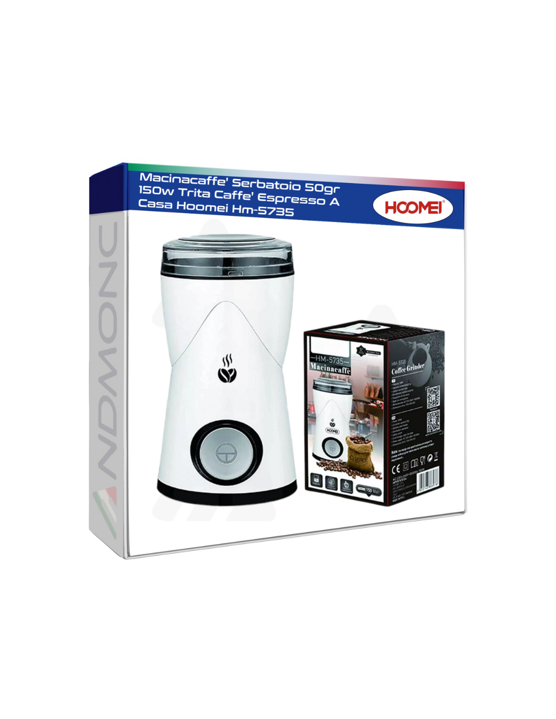 Il Hoomei HM-5735 è il macinacaffè perfetto per chi vuole godersi l’aroma del caffè appena macinato, ogni giorno. Dotato di un motore da 150W e lame in acciaio inox, trita rapidamente chicchi di caffè per ottenere una macinatura ideale per moka o espresso. Con una capacità di 50g, è adatto per più tazze e per l’uso quotidiano.