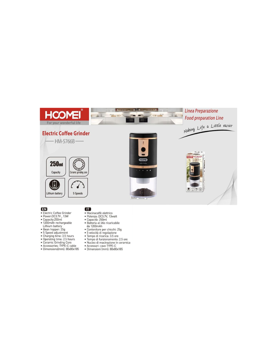 Macina Caffè Elettrico Hoomei HM-5766B – Ricaricabile, 5 Velocità, Ceramica, Nero